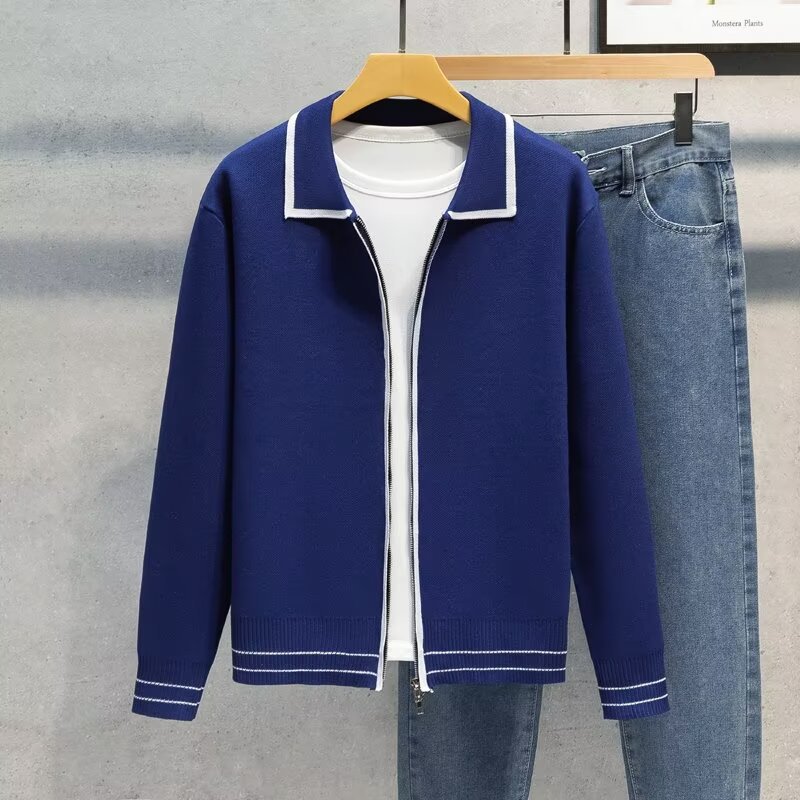 프랑스 럭셔리 우아한 남성용 옷깃 스웨터 카디건 라이트 럭셔리 패션 캐주얼 올 매치 스웨터 재킷