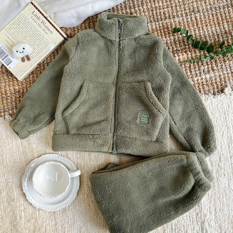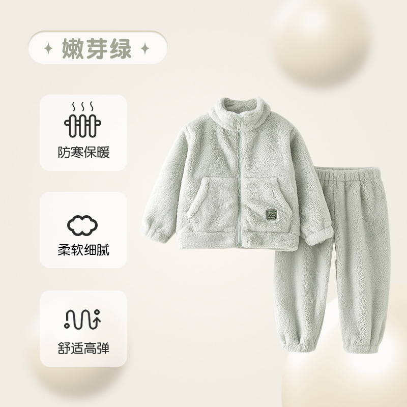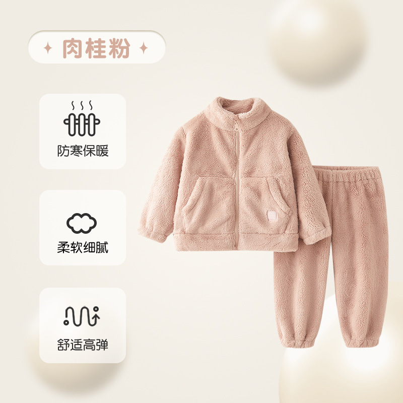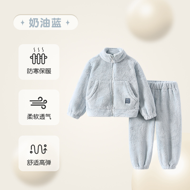 가을, 겨울 어린이 가정 의류 두꺼운 포옹 벨벳 따뜻한 어린이 잠옷 긴 소매 소년과 소녀 지퍼 새해 빨간색