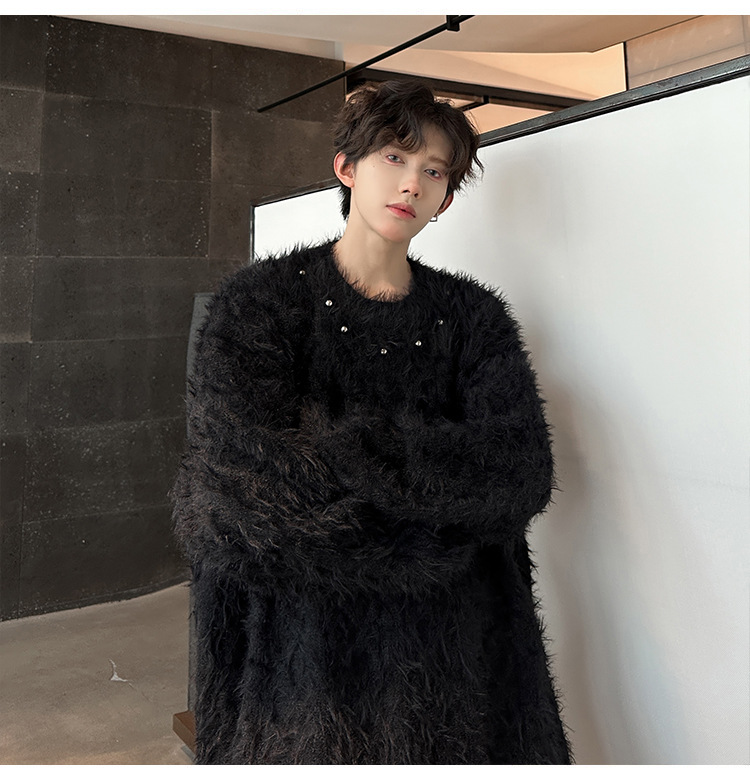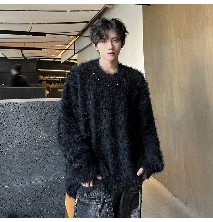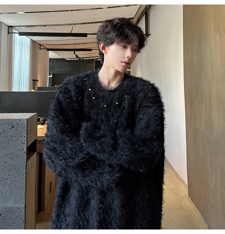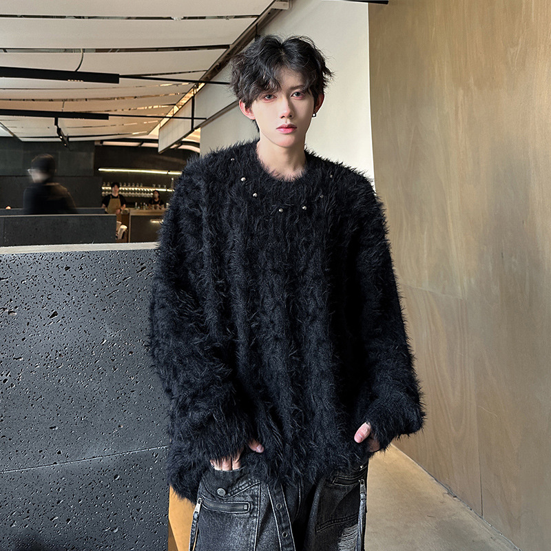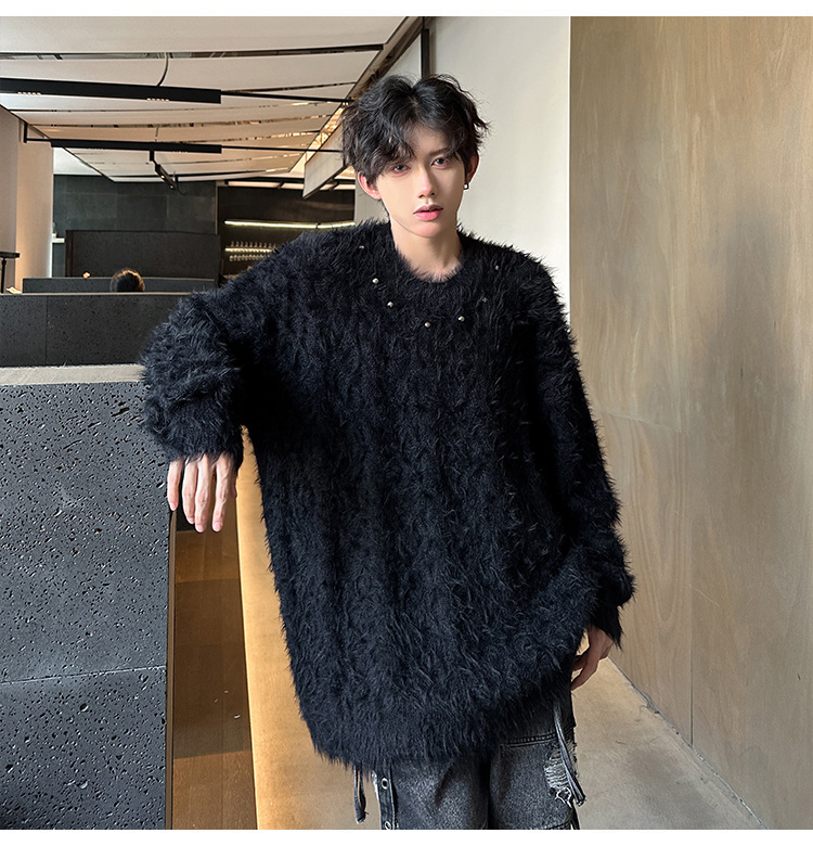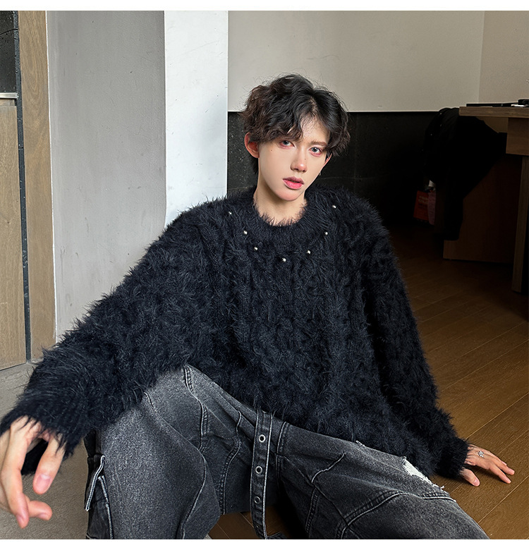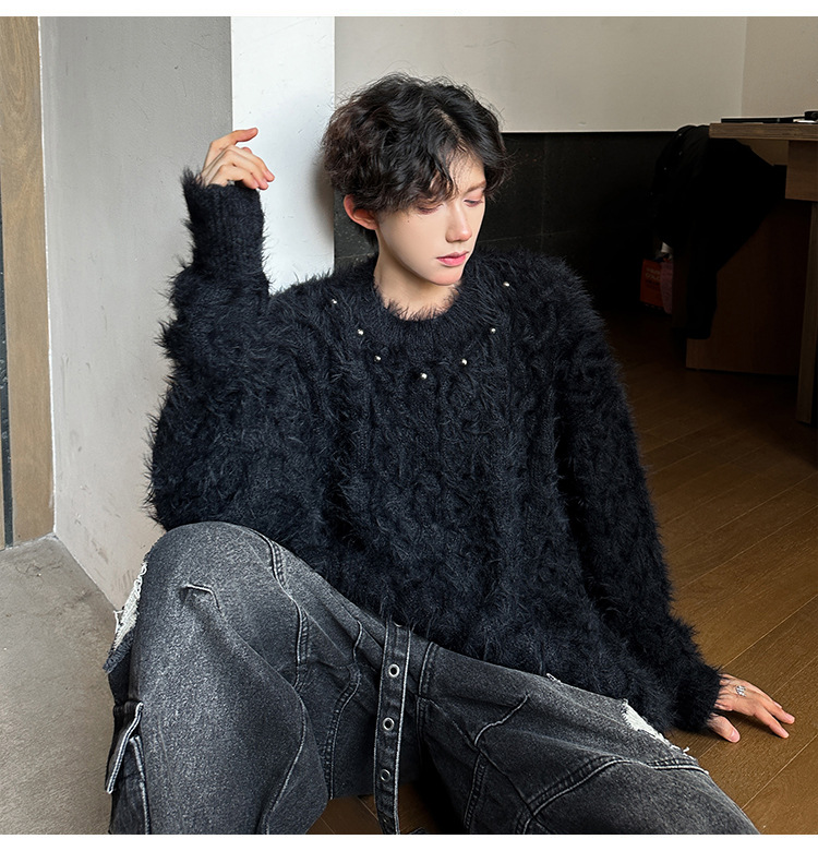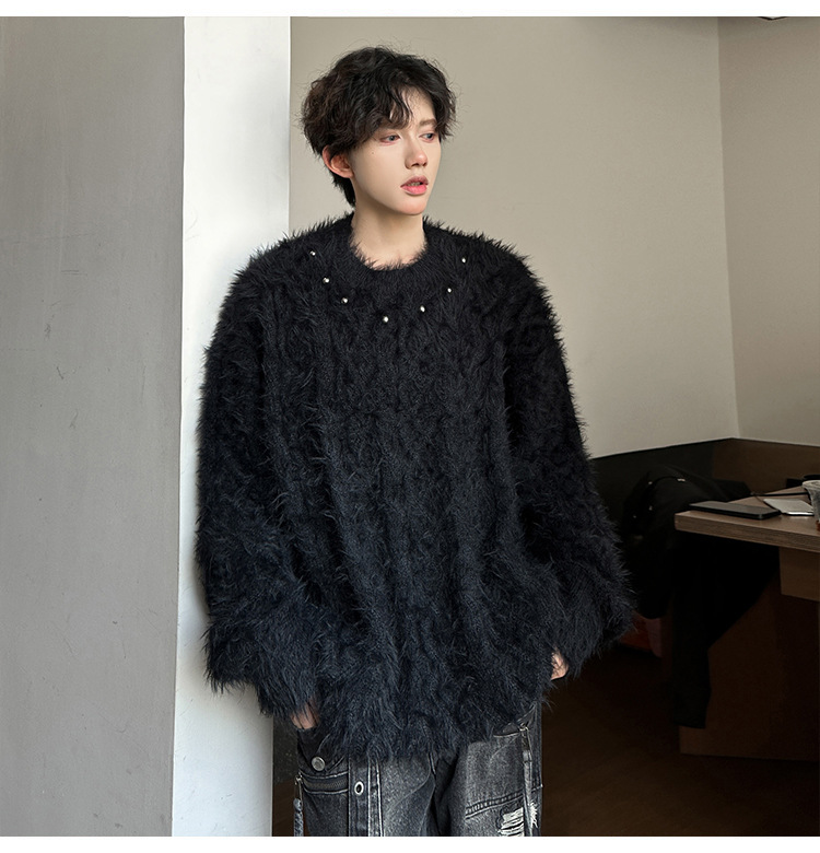 미국 레트로 화이트 스웨터 남자 2024 가을과 겨울 새로운 패션 브랜드 느슨한 게으른 스타일 봉제 스웨터 재킷