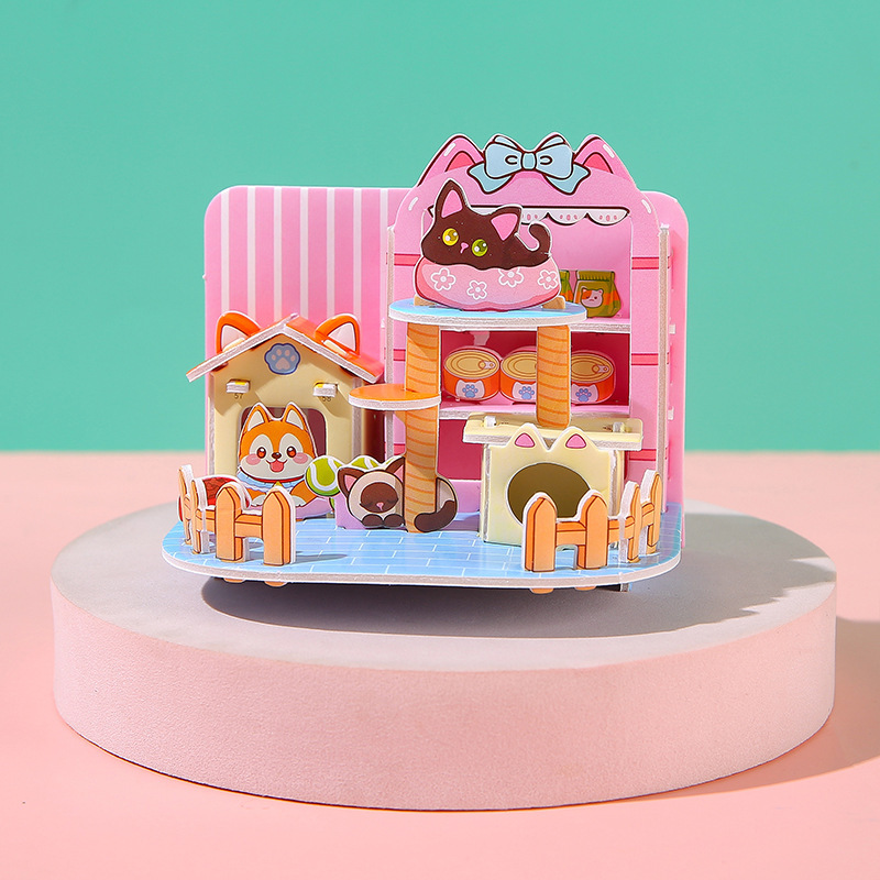 창조적 인 아이들의 3D 입체 작은 집 퍼즐 모델 학생 3-6 세 선물을위한 DIY 종이 손으로 만든 퍼즐 장난감스토어 가기