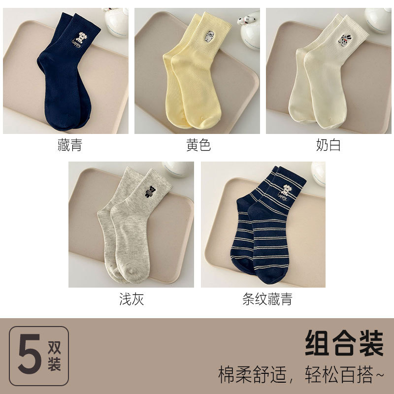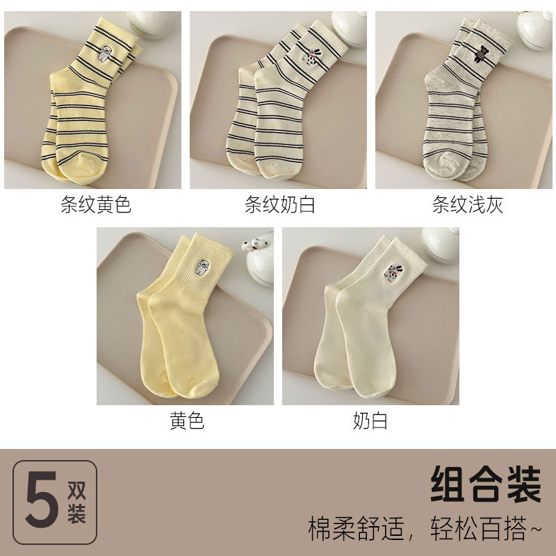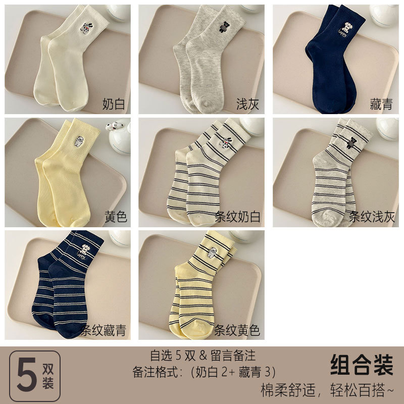 • 5켤레 [네이비블루+옐로우+밀크화이트+라이트그레이+스트라이프네이비블루]