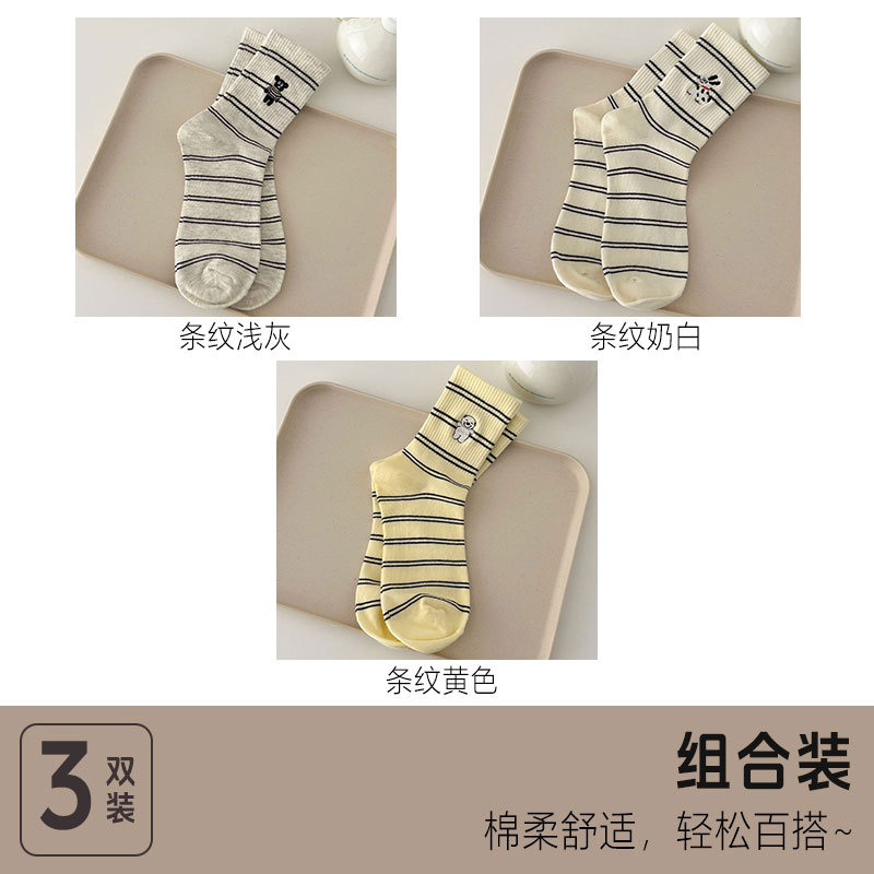 • 3쌍 [스트라이프 라이트 그레이 + 스트라이프 밀크 화이트 + 스트라이프 옐로우]