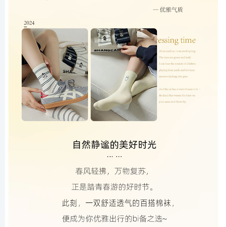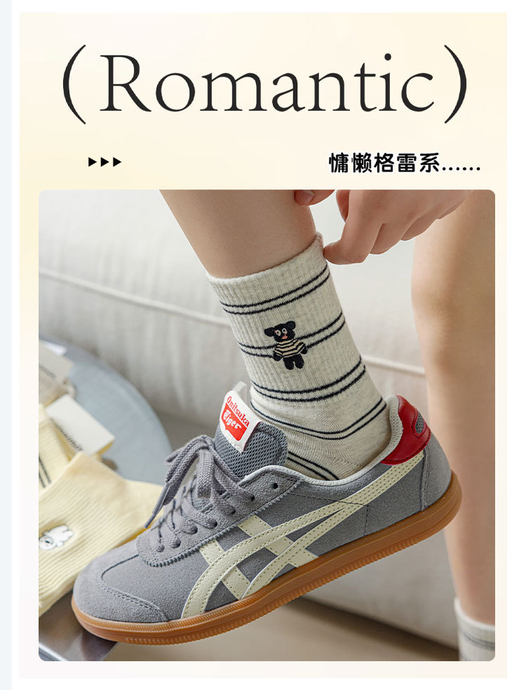 귀여운 강아지 수 놓은 양말 숙녀 중간 길이 양말, 트렌디 한 면 양말 가을과 겨울 일본 줄무늬 스포츠 스타킹스토어 가기