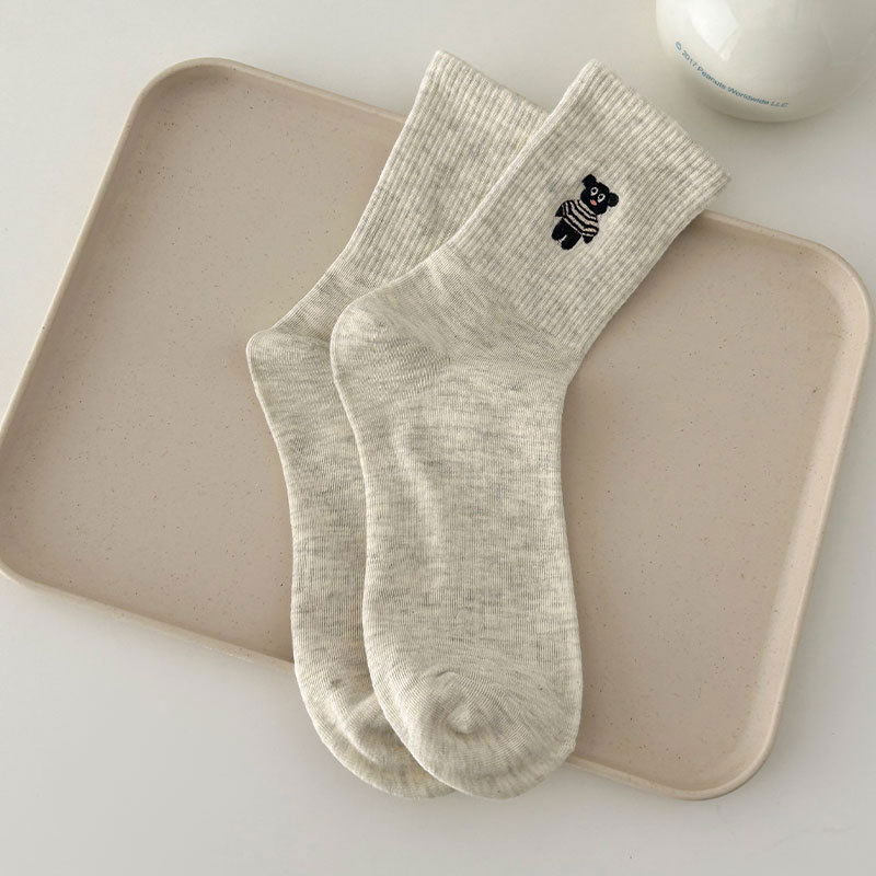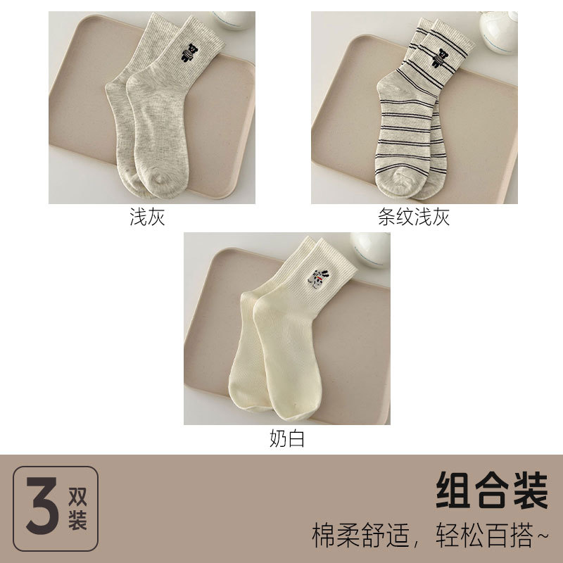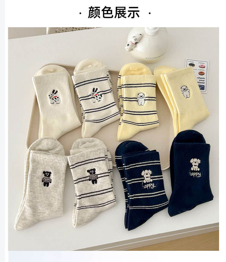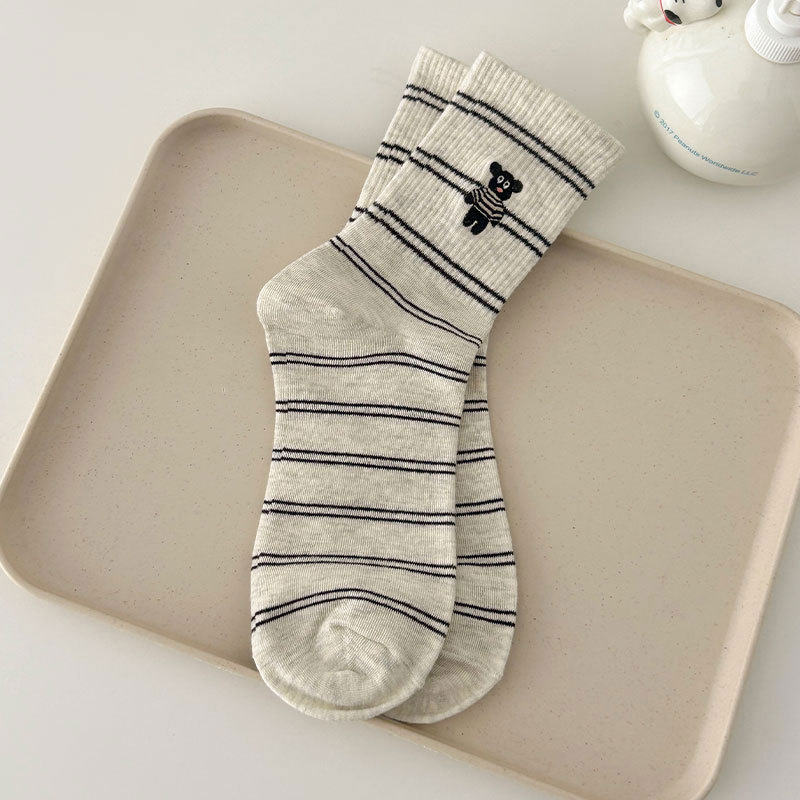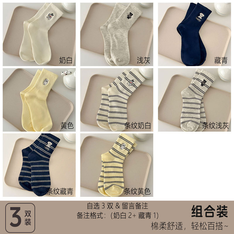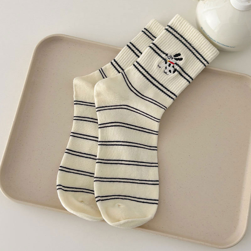 귀여운 강아지 수 놓은 양말 숙녀 중간 길이 양말, 트렌디 한 면 양말 가을과 겨울 일본 줄무늬 스포츠 스타킹