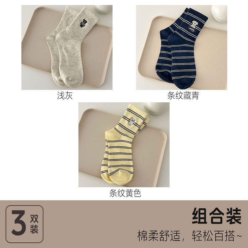 • 3켤레 [라이트 그레이 + 스트라이프 네이비 + 스트라이프 옐로우]