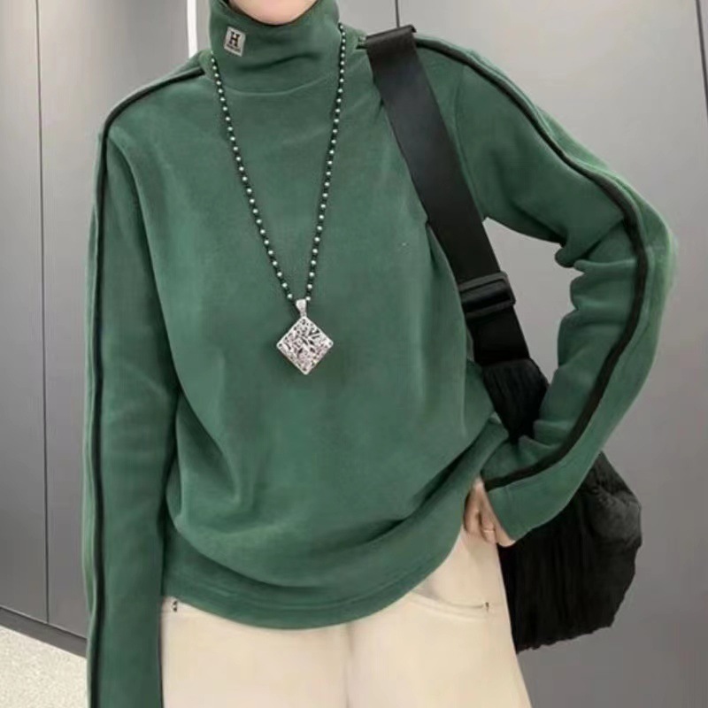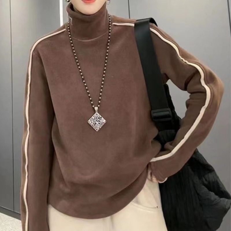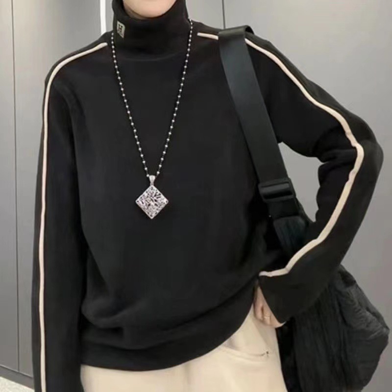 높은 칼라 대비 컬러 양면 벨벳베이스 풀오버 스웨터 여성의 2023 가을과 겨울 새로운 패션 긴 소매 최고 트렌디스토어 가기