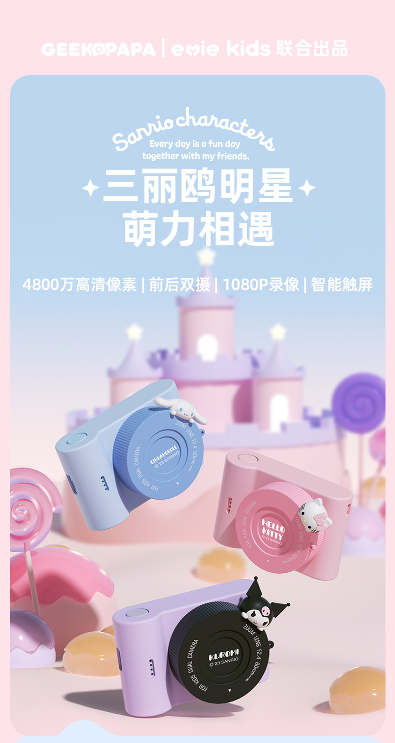 GEEKPAPA 어린이 카메라 kulomi sanrio 만화 컬러 미니 학교 카메라 장난감 CCD스토어 가기