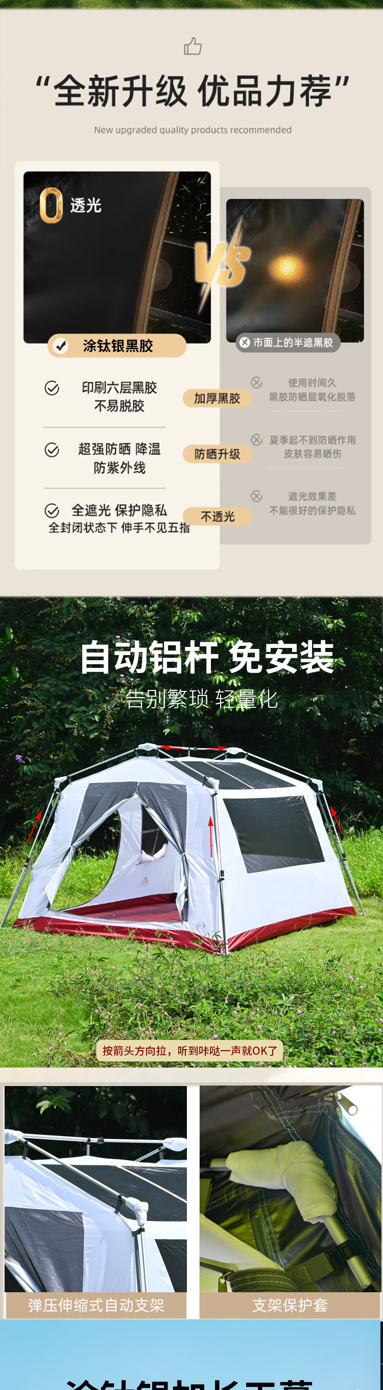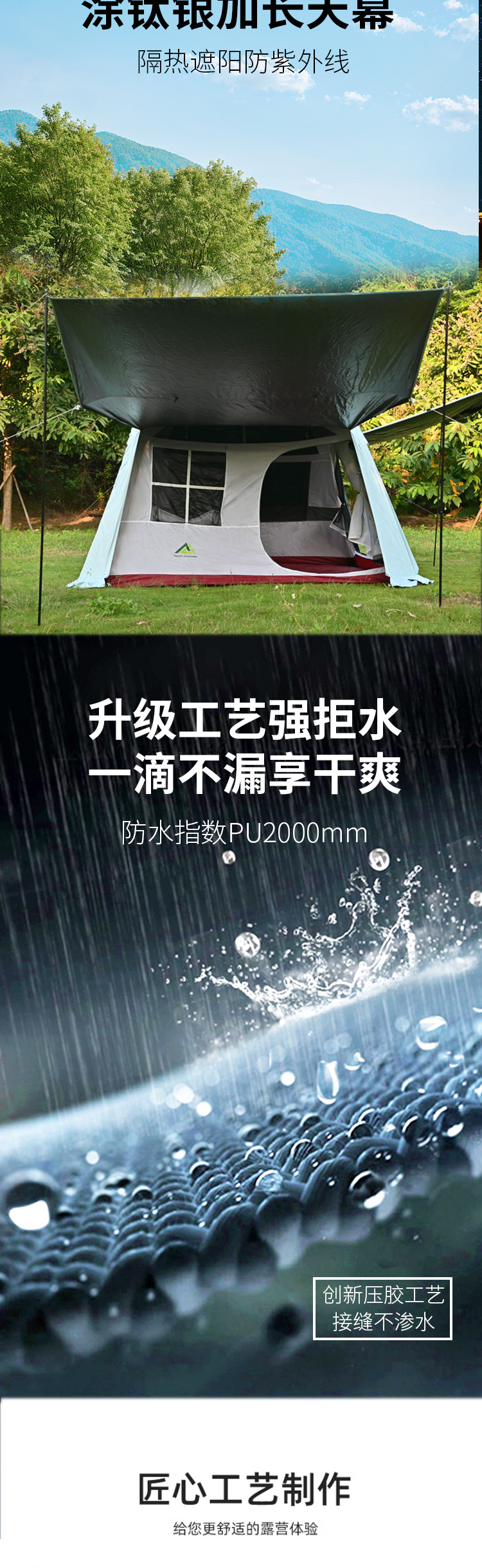 Tailint 지붕 빠른 오프닝 텐트 스카이 커튼 2 대 1 초대형 야외 캠핑 캠핑 옥스포드 천 코팅 티타늄 선 스크린