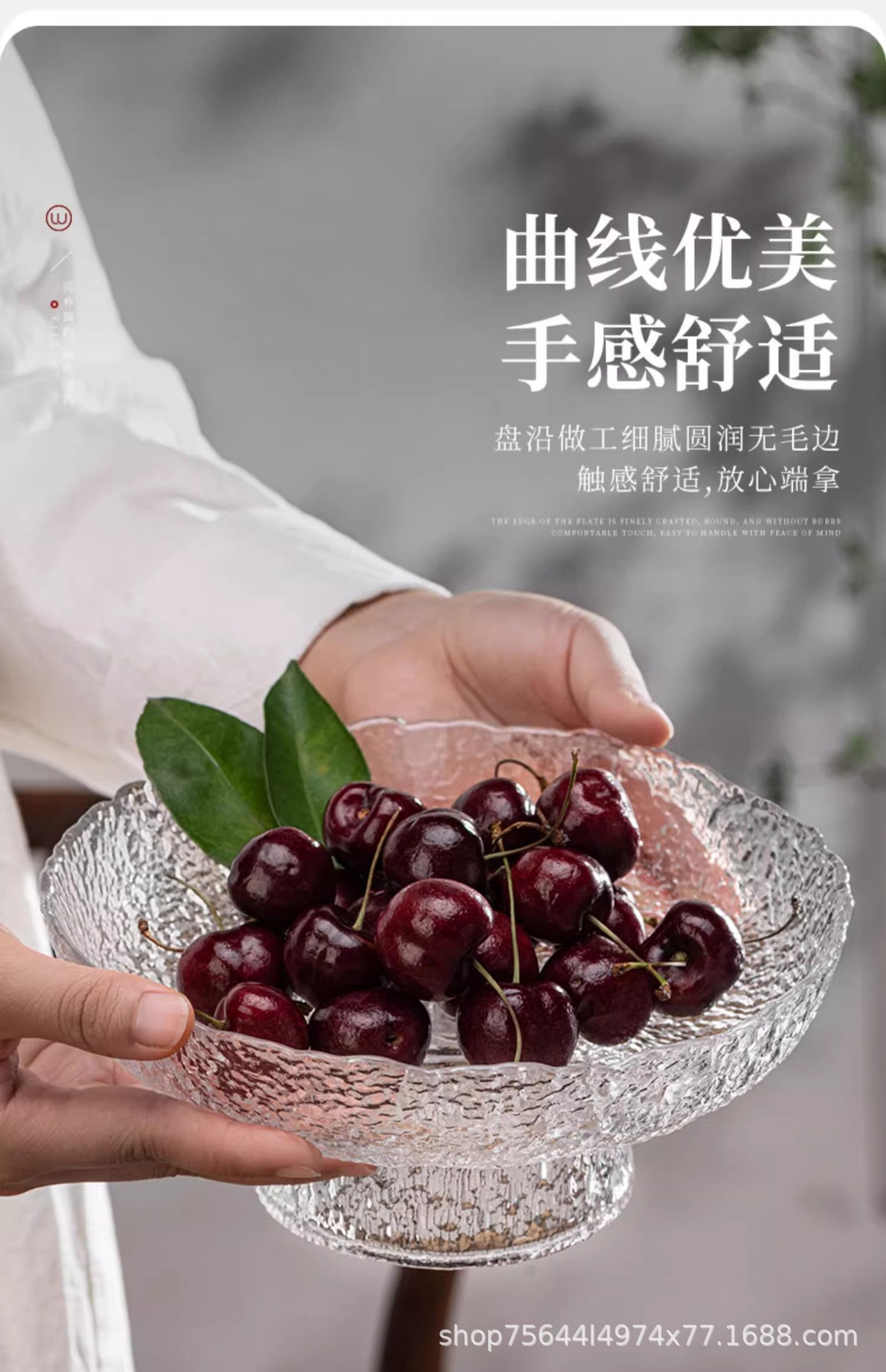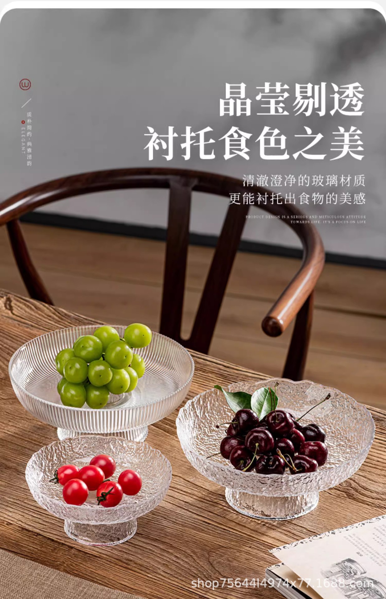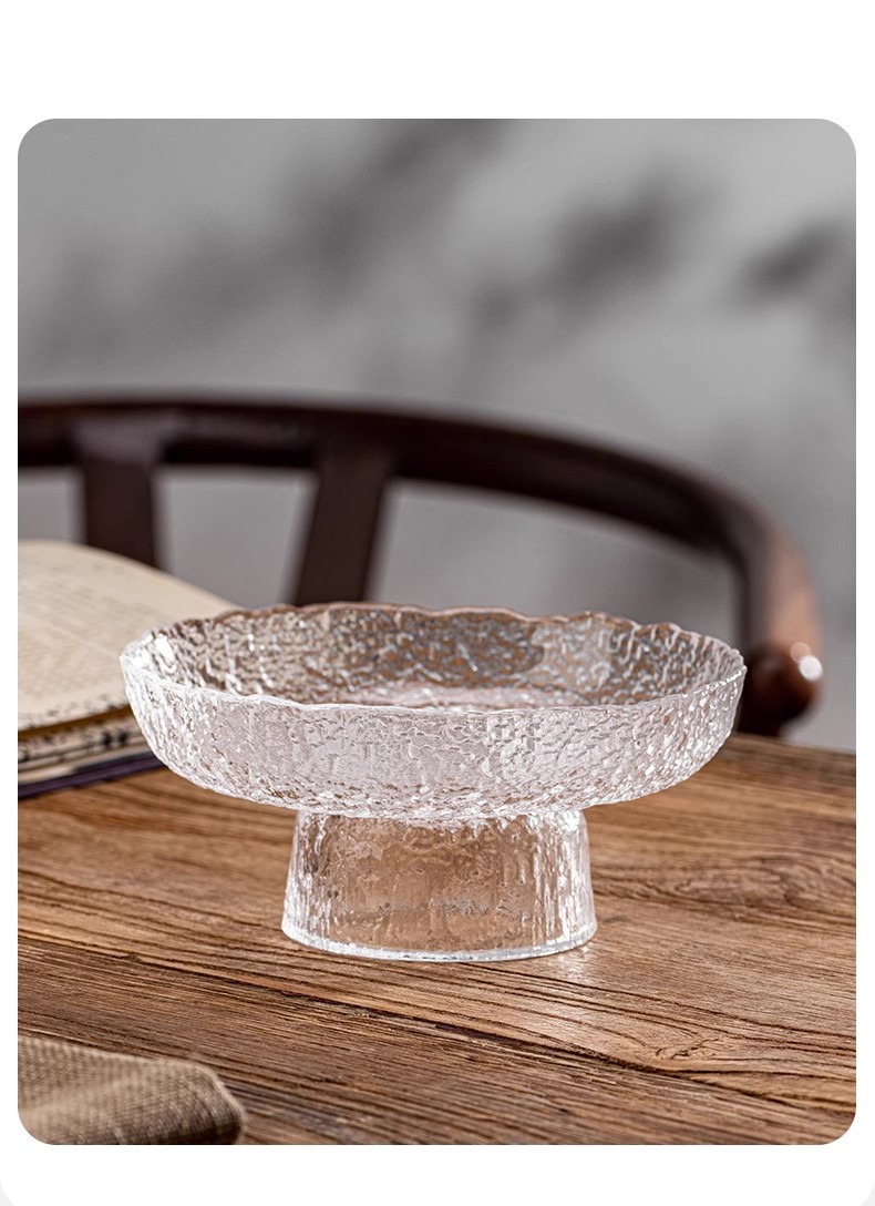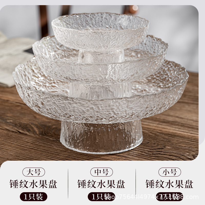 유리 과일 플레이트 샐러드 그릇 스타일 높은 색상 가치 큰 투명 말린 과일 플레이트 라운드 스낵 플레이트 돌 패턴 과일 플레이트