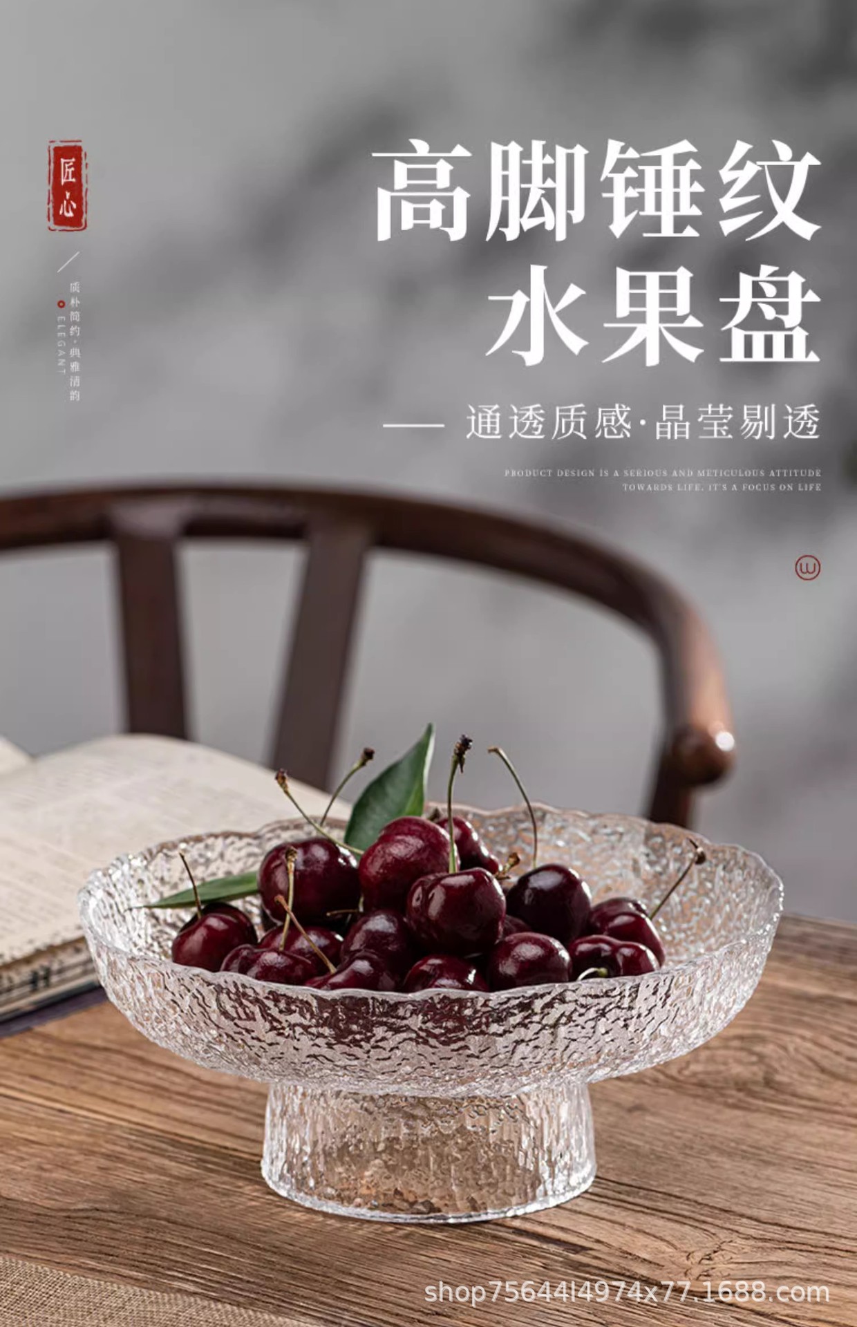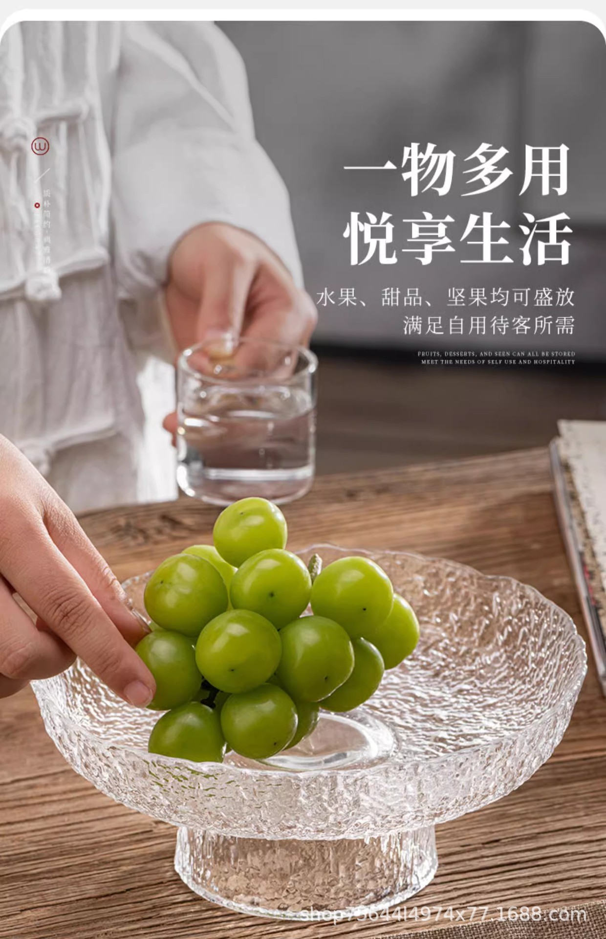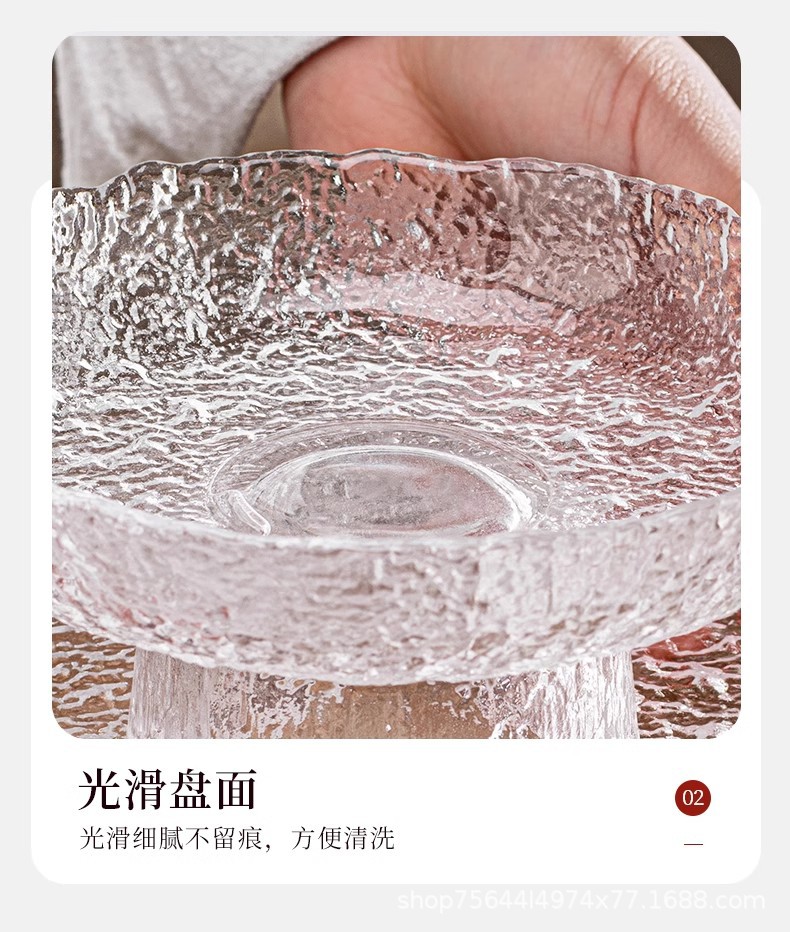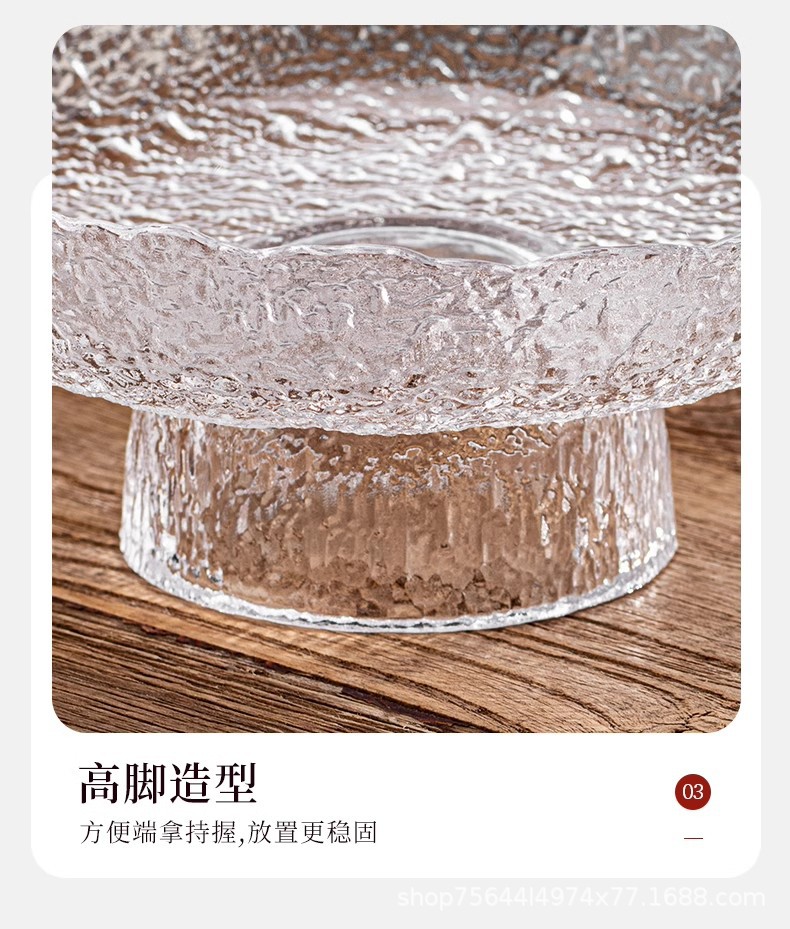 유리 과일 플레이트 샐러드 그릇 스타일 높은 색상 가치 큰 투명 말린 과일 플레이트 라운드 스낵 플레이트 돌 패턴 과일 플레이트