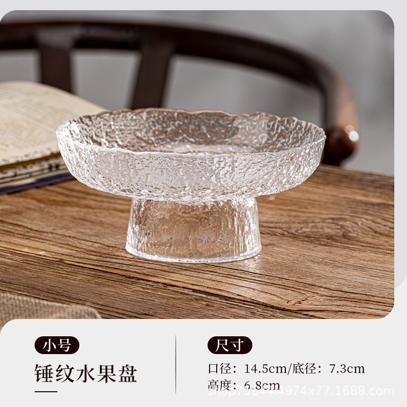 유리 과일 플레이트 샐러드 그릇 스타일 높은 색상 가치 큰 투명 말린 과일 플레이트 라운드 스낵 플레이트 돌 패턴 과일 플레이트스토어 가기
