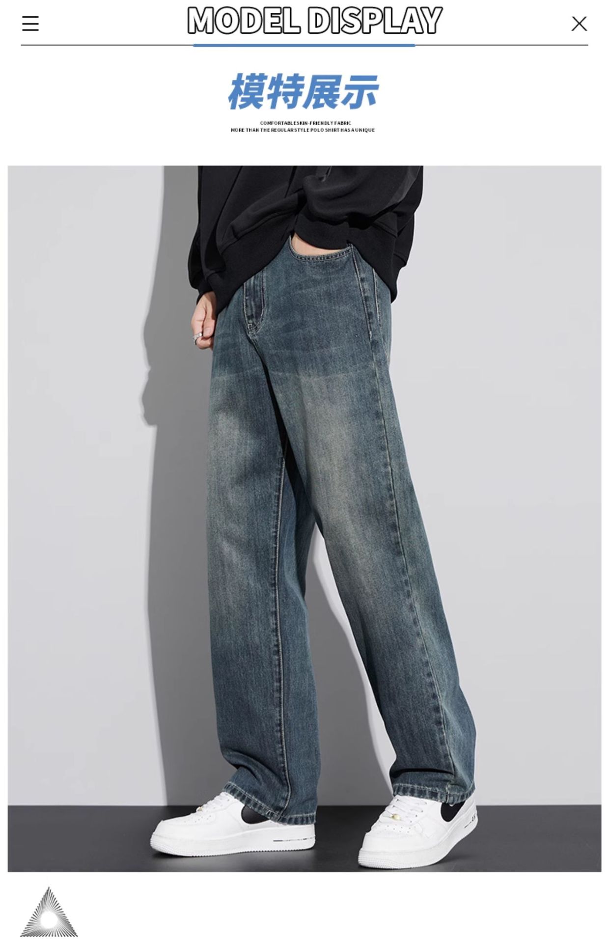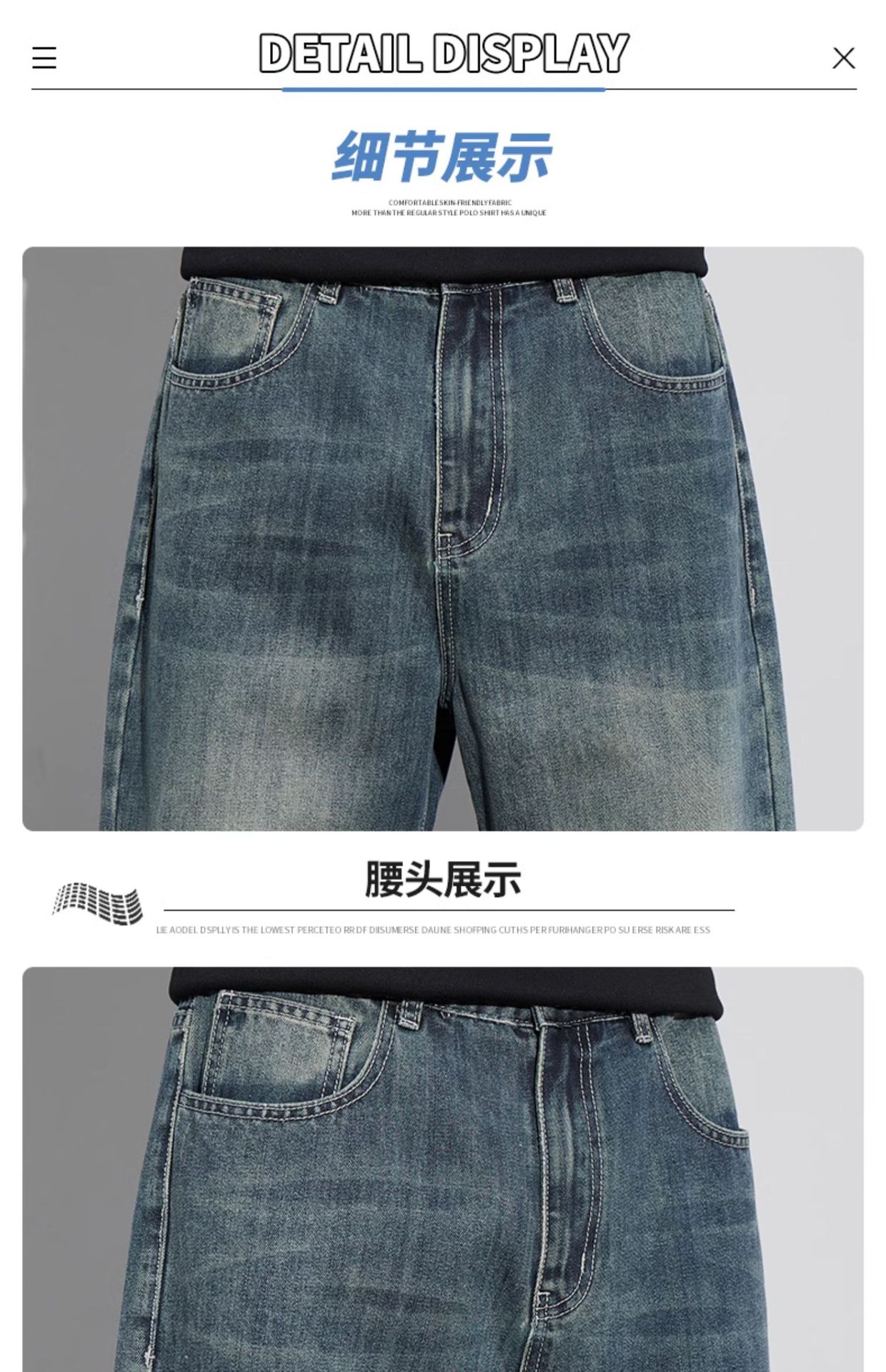 청바지 남성 가을과 겨울 패션 브랜드 느슨한 스트레이트 2024 봄과 가을 겨울 아메리칸 스타일 레트로 기모 캐주얼 긴 바지스토어 가기