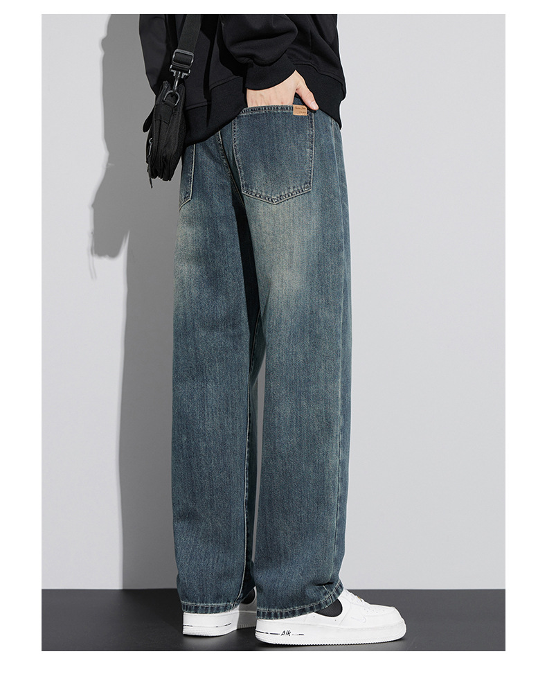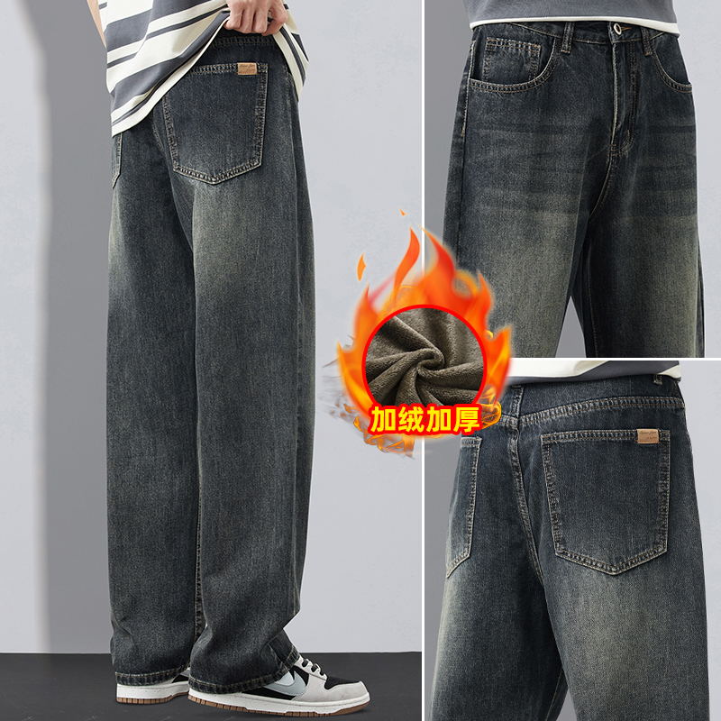 청바지 남성 가을과 겨울 패션 브랜드 느슨한 스트레이트 2024 봄과 가을 겨울 아메리칸 스타일 레트로 기모 캐주얼 긴 바지