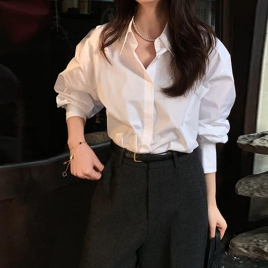 프랑스 디자인 센스 니쉬 화이트 셔츠 재킷 여성 최고의 새로운 통근 셔츠 이른 가을