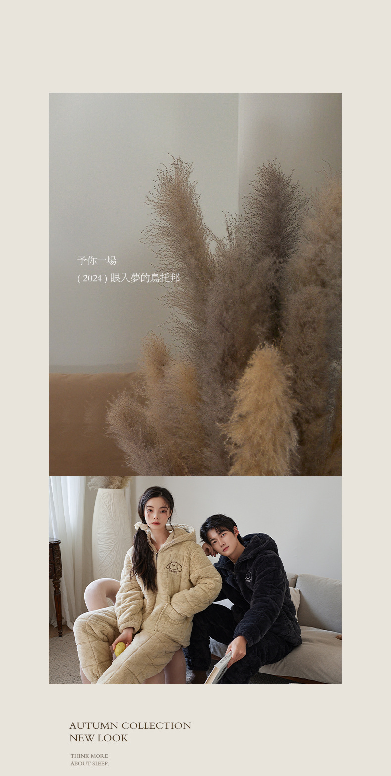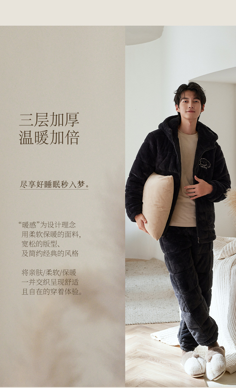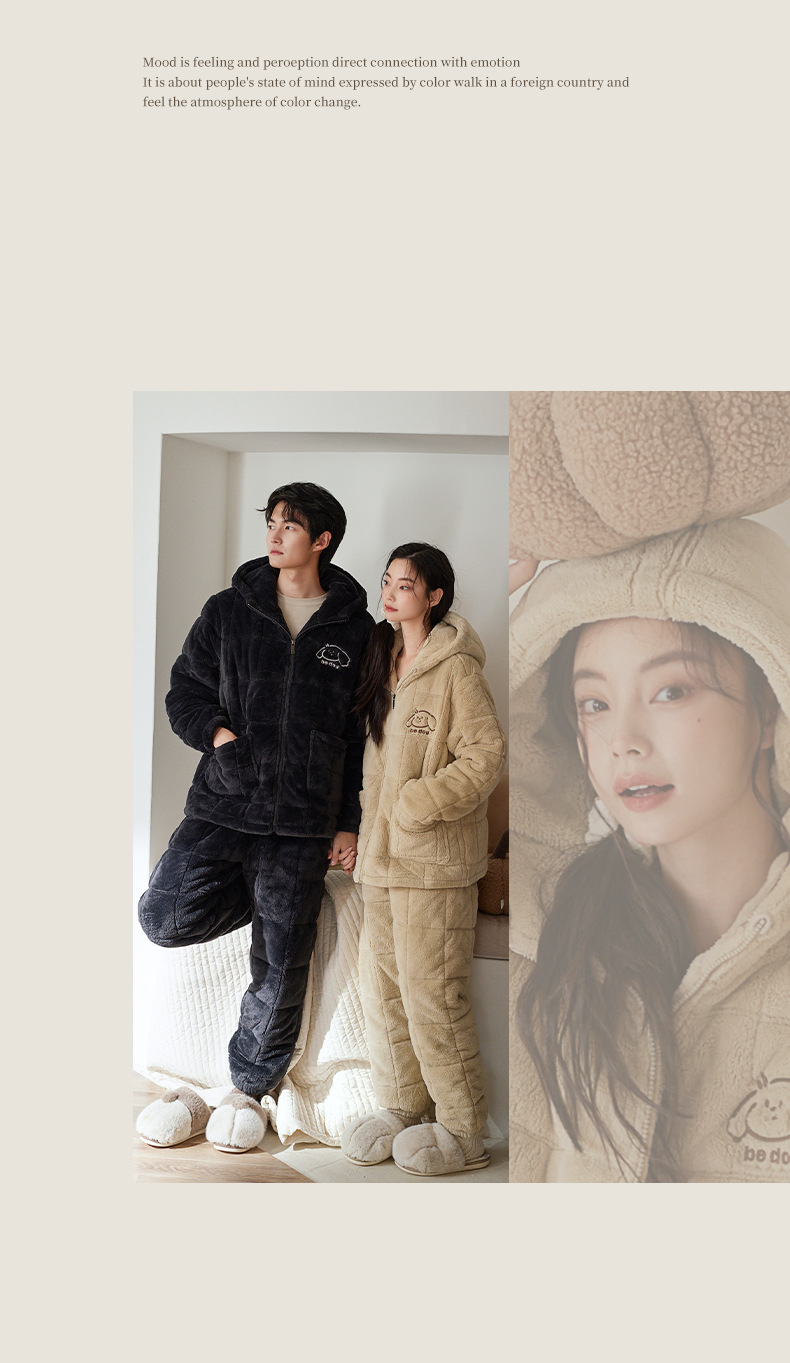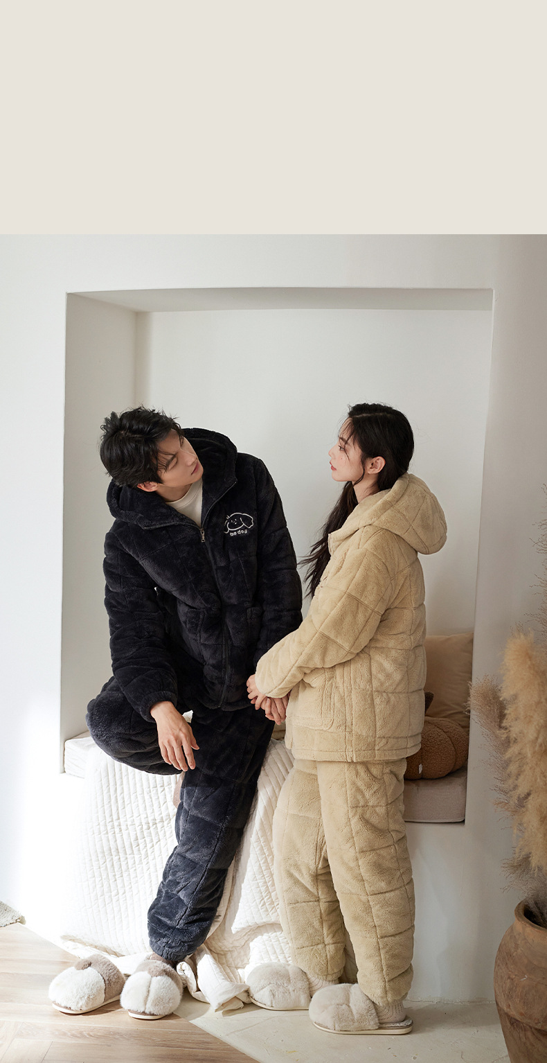 커플을위한 두꺼운 3 층 퀼트 파자마 겨울 산호 양털 두꺼운 따뜻한 후드 여성용 홈 의류 남성 세트스토어 가기