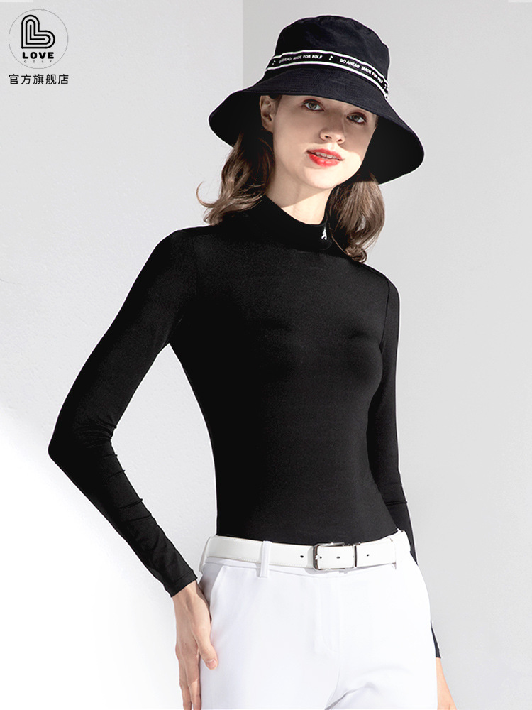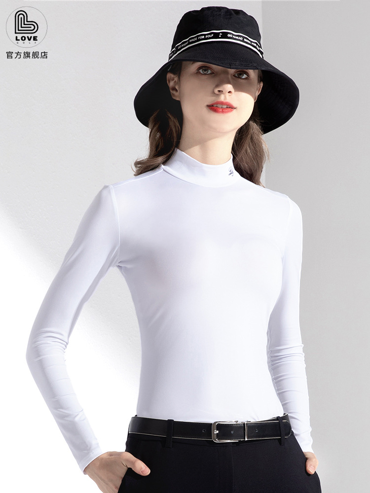 새로운 골프 의류 여성베이스 셔츠 탄성 스포츠 탑 골프 저지 봄과 가을 높은 칼라 긴 소매 여성스토어 가기