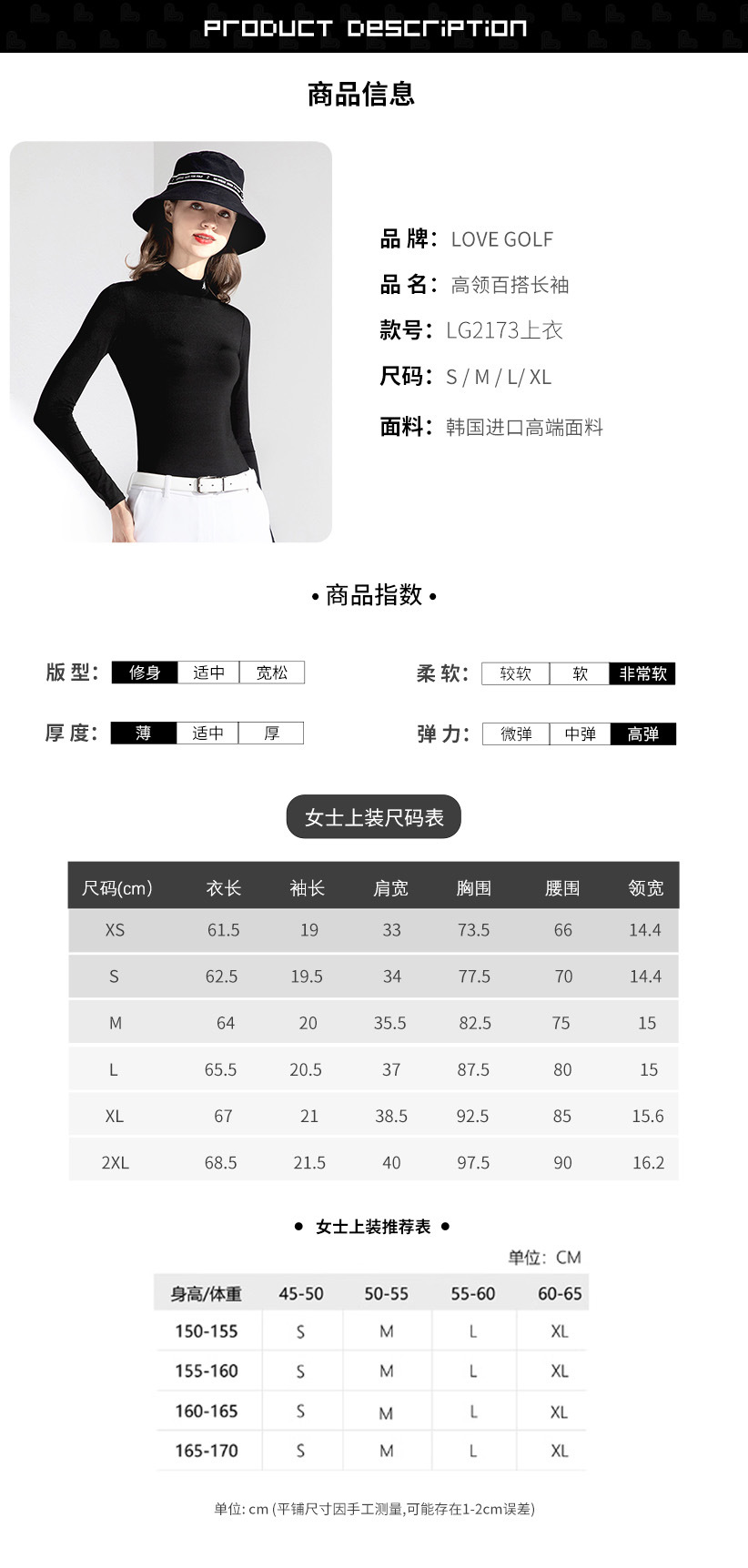 새로운 골프 의류 여성베이스 셔츠 탄성 스포츠 탑 골프 저지 봄과 가을 높은 칼라 긴 소매 여성