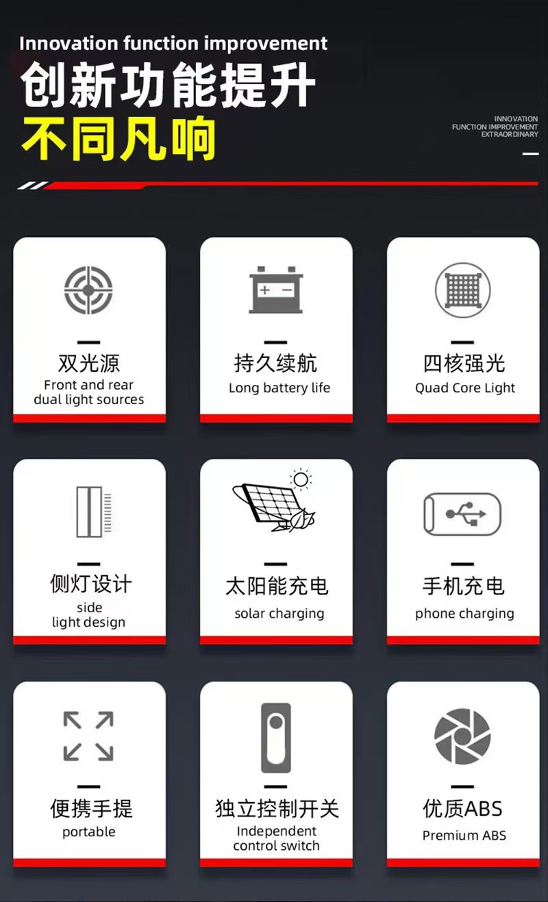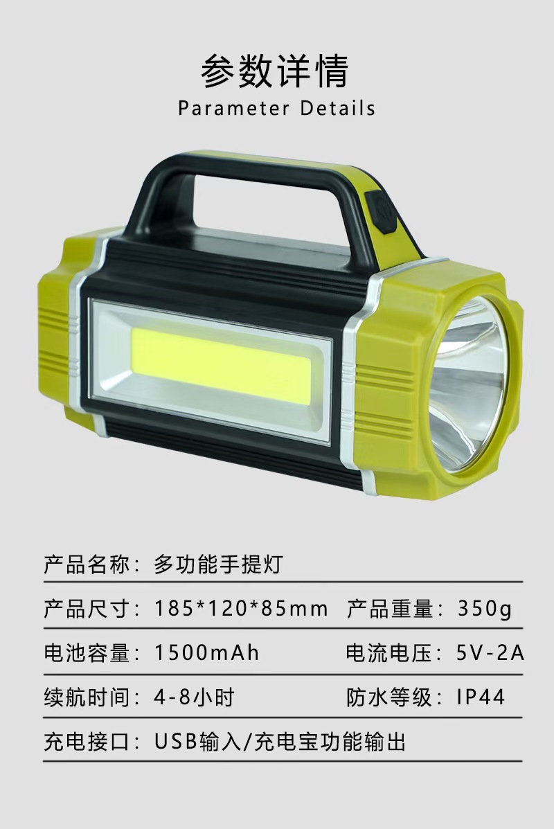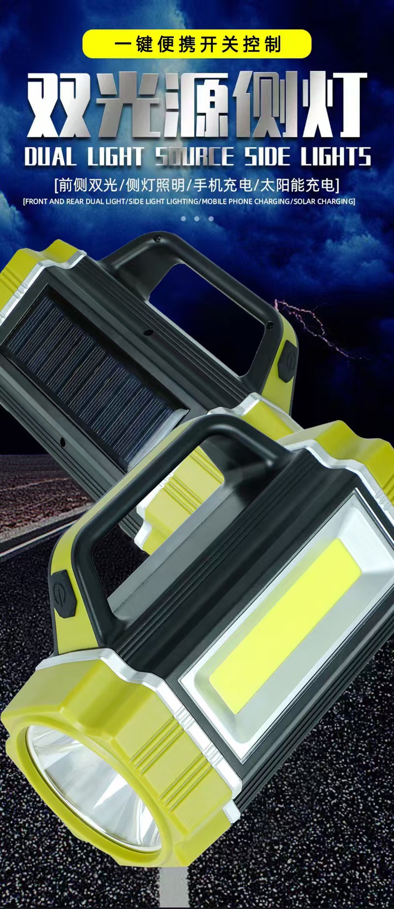 • 손전등 강한 빛 충전식 야외 슈퍼 밝은 장거리 태양 휴대용 탐조등 긴 배터리 수명 가정용 대용량