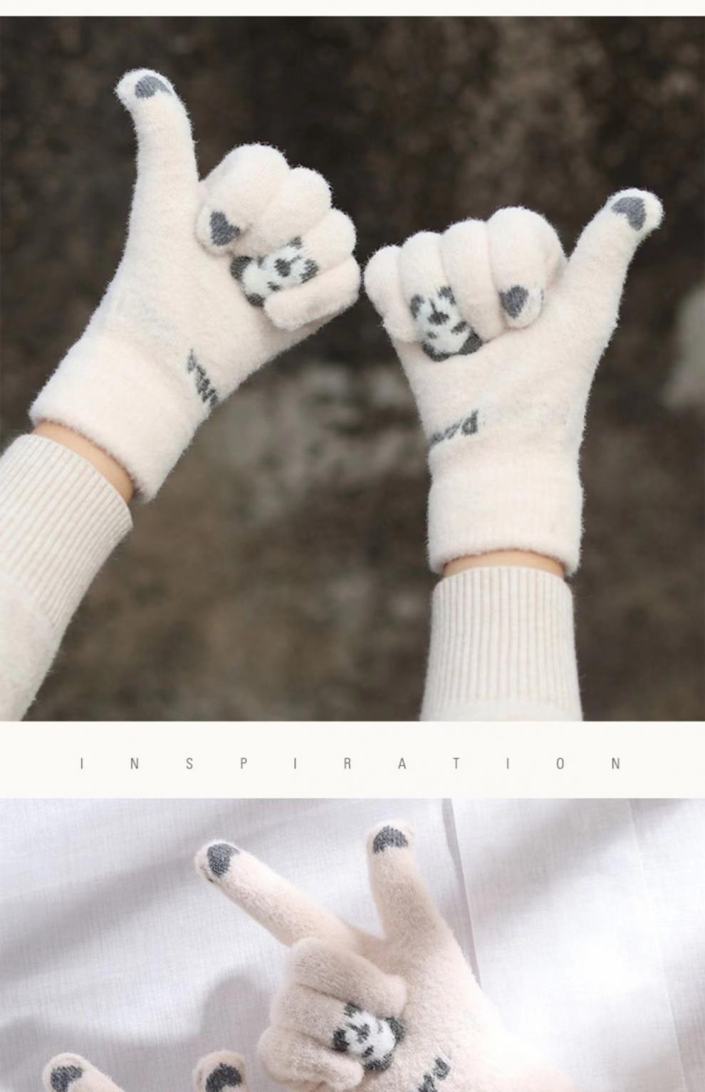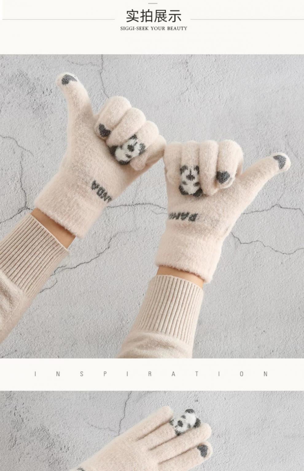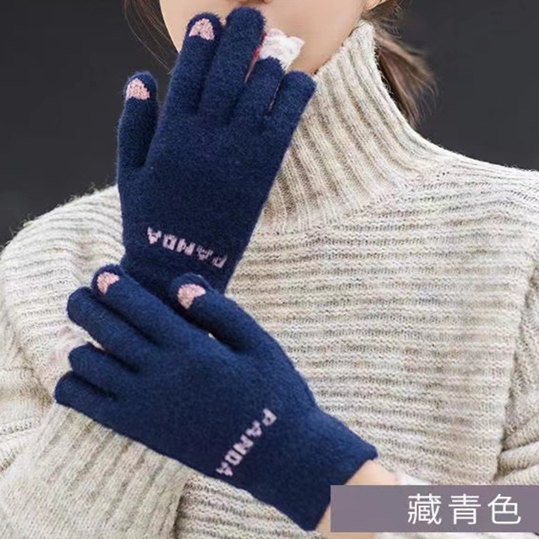 여성 양모 장갑 귀여운 만화 학생 가을과 겨울 따뜻한 한국 손가락 곰 올 매치 라이딩 방풍 터치 스크린