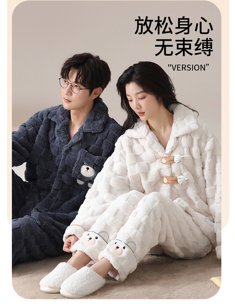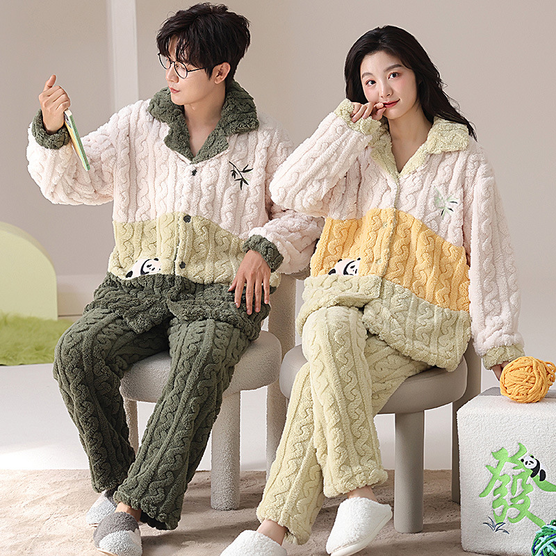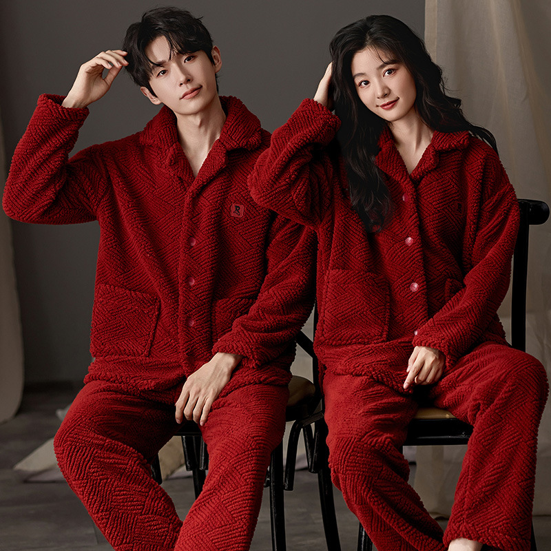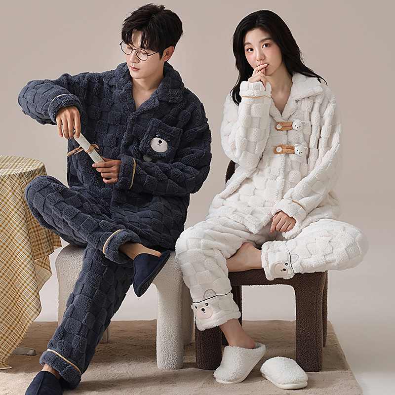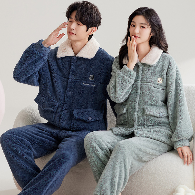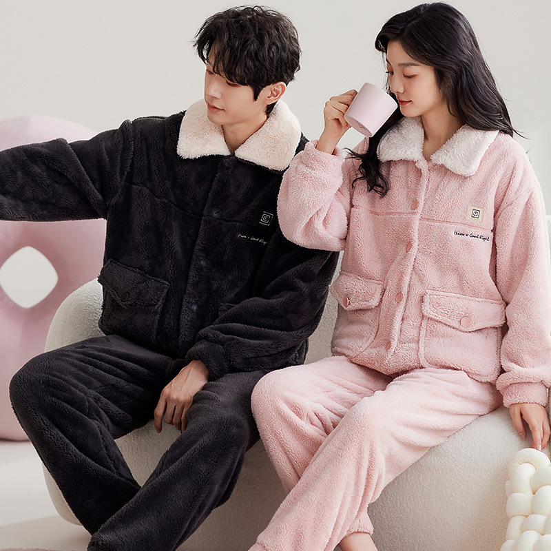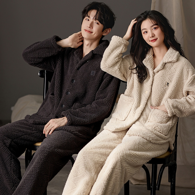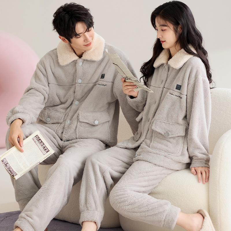 2024 가을과 겨울에 남성과 여성을위한 새로운 커플 잠옷 두꺼운 간단한 캐주얼 따뜻한 가정 옷 세트 착용
