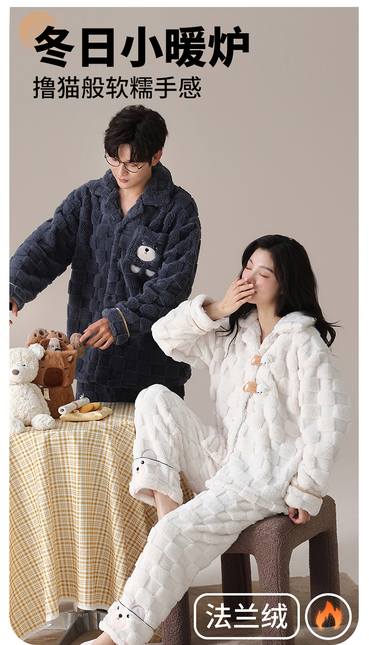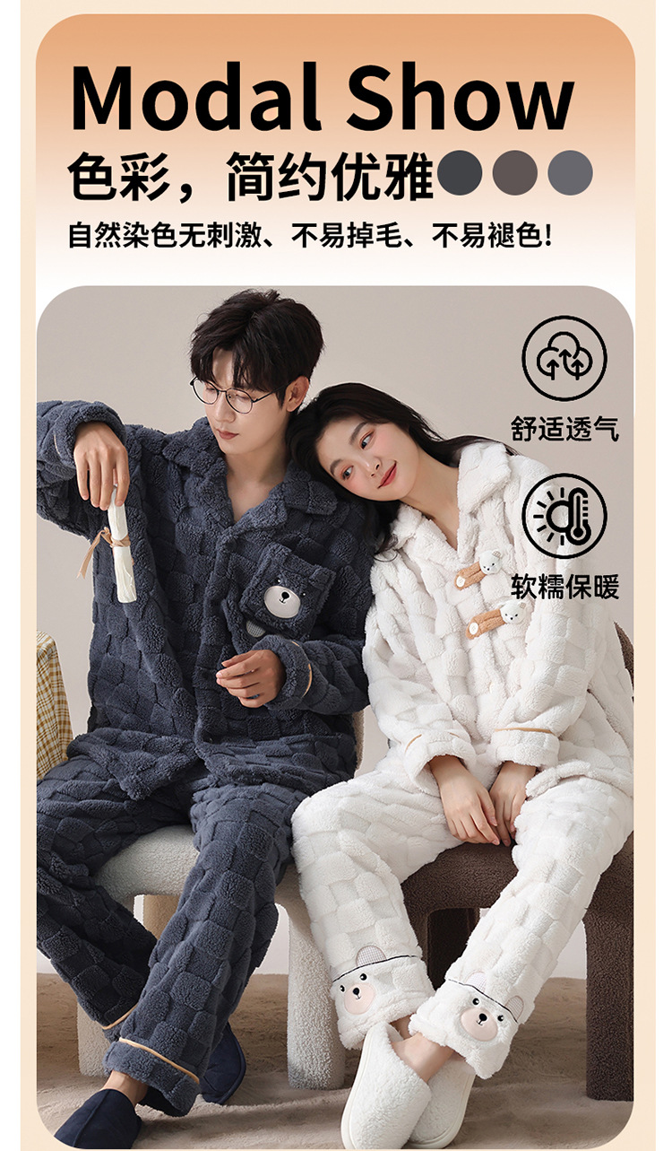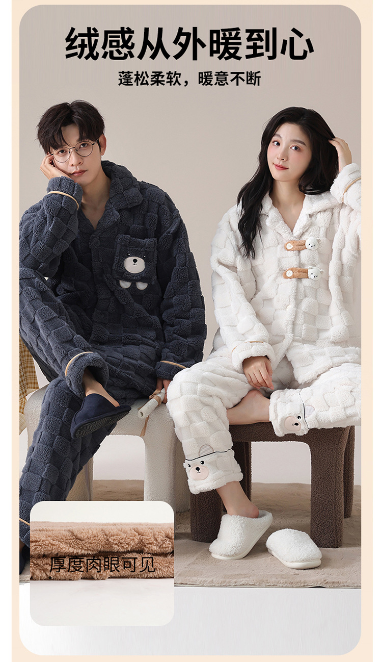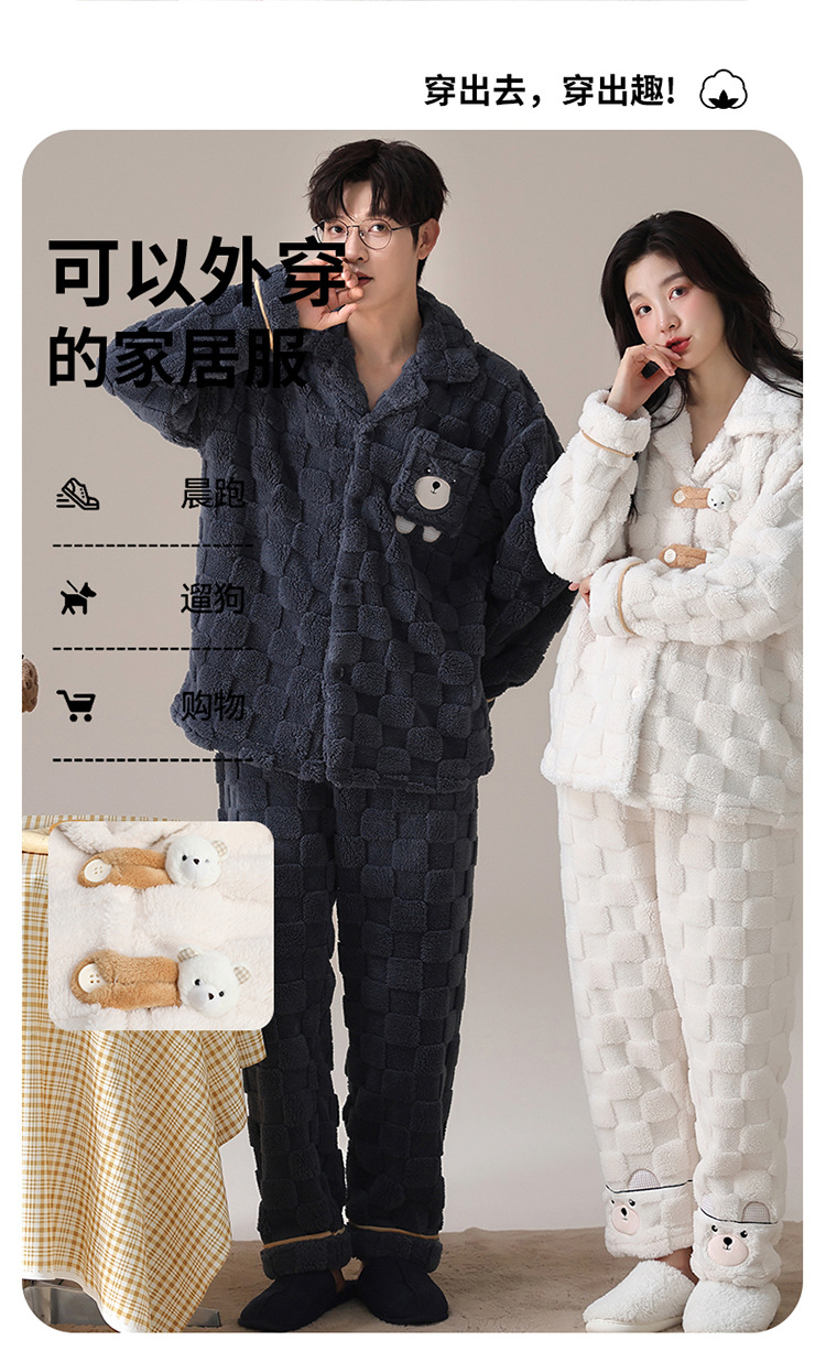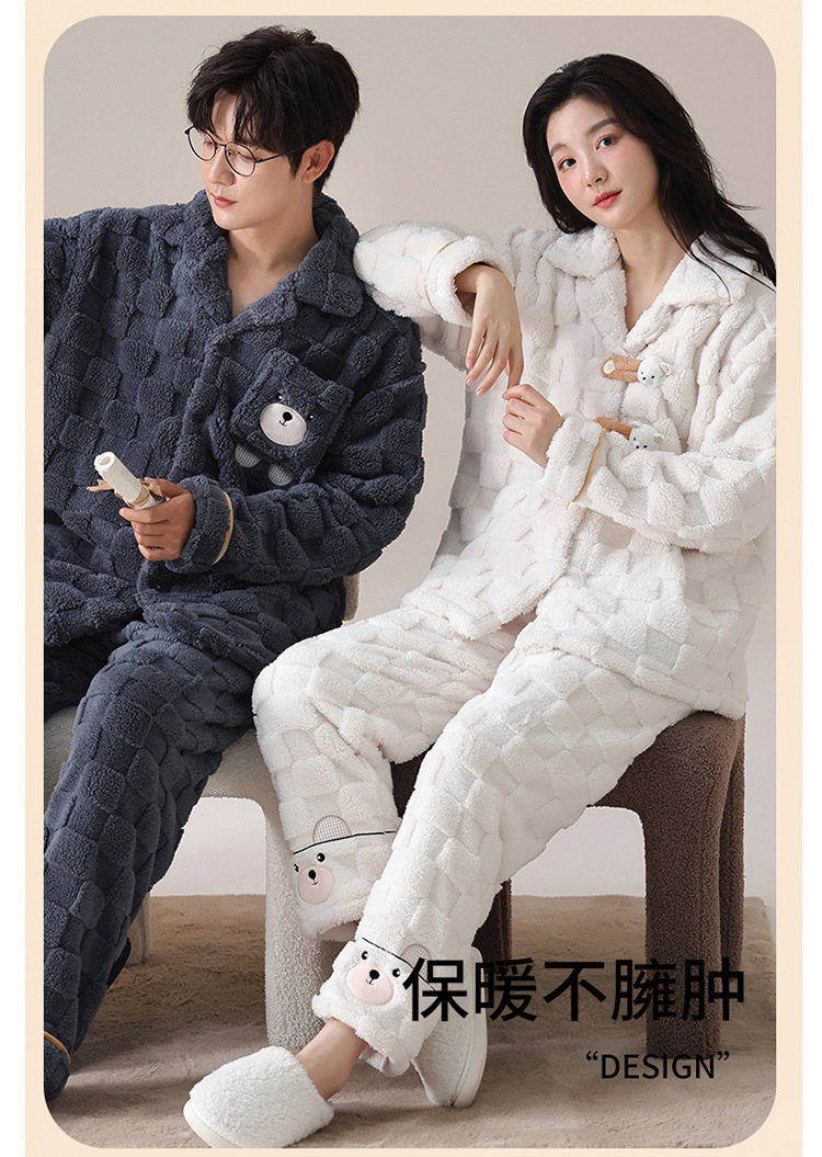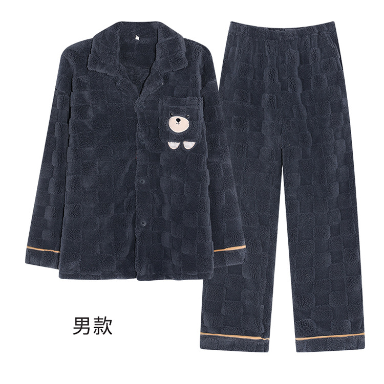 2024 가을과 겨울에 남성과 여성을위한 새로운 커플 잠옷 두꺼운 간단한 캐주얼 따뜻한 가정 옷 세트 착용