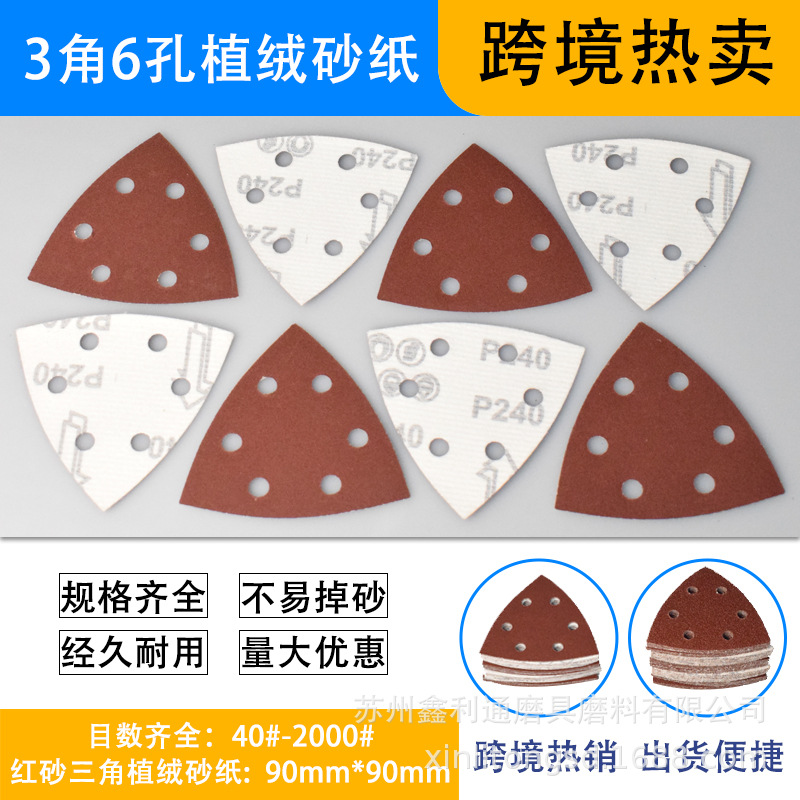 국경 간 폭발 삼각형 뒤 벨벳 6 홀 사포 가구 건조 연삭 연마 잠금 삼각형 가죽 빨간 사포스토어 가기
