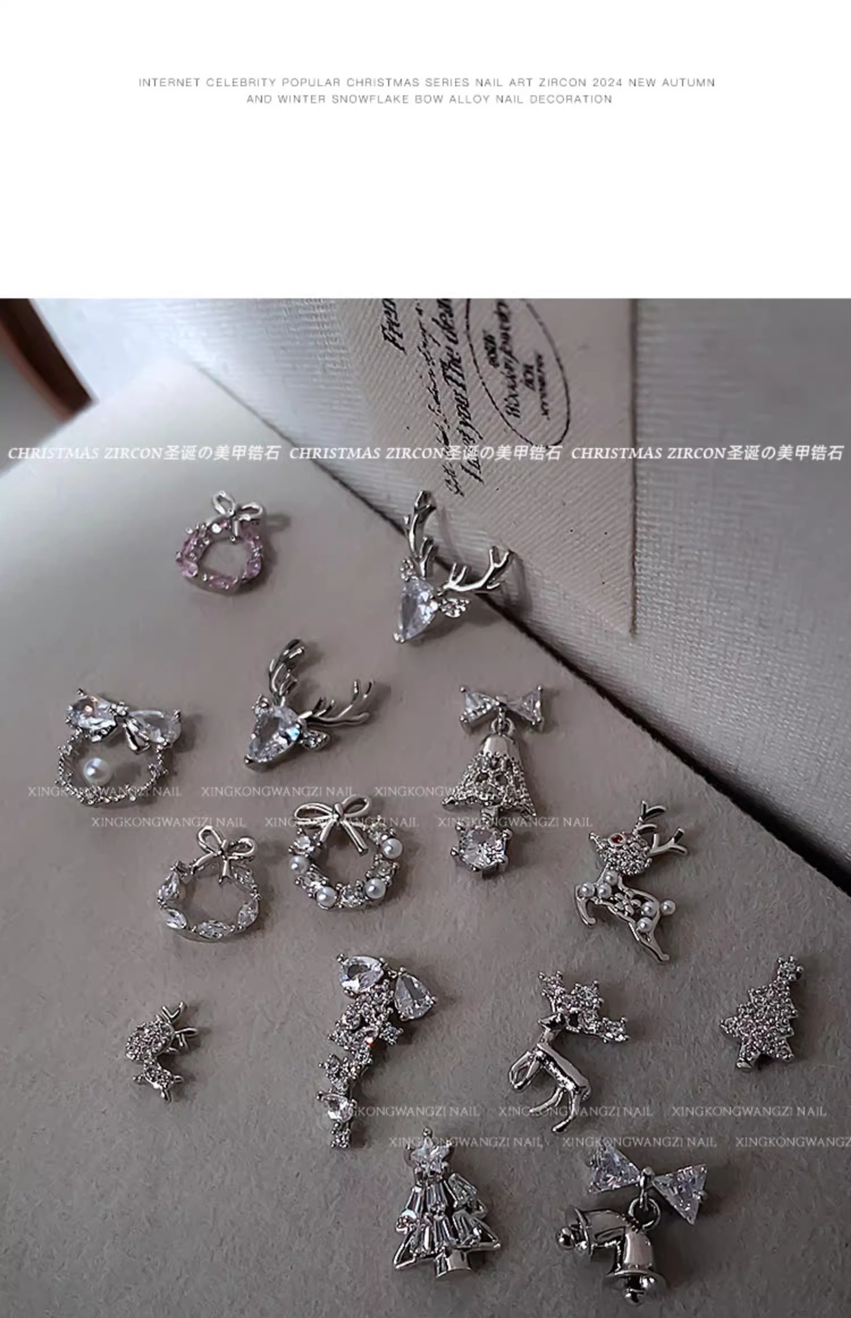 크리스마스 지르콘 네일 장식품 귀여운 만화 엘크 화환 크리스마스 트리 별 종 활 네일 드릴스토어 가기