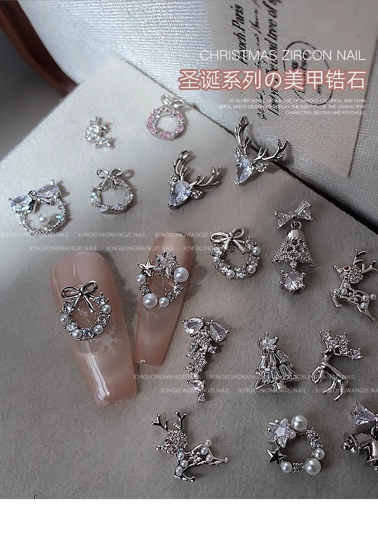 크리스마스 지르콘 네일 장식품 귀여운 만화 엘크 화환 크리스마스 트리 별 종 활 네일 드릴