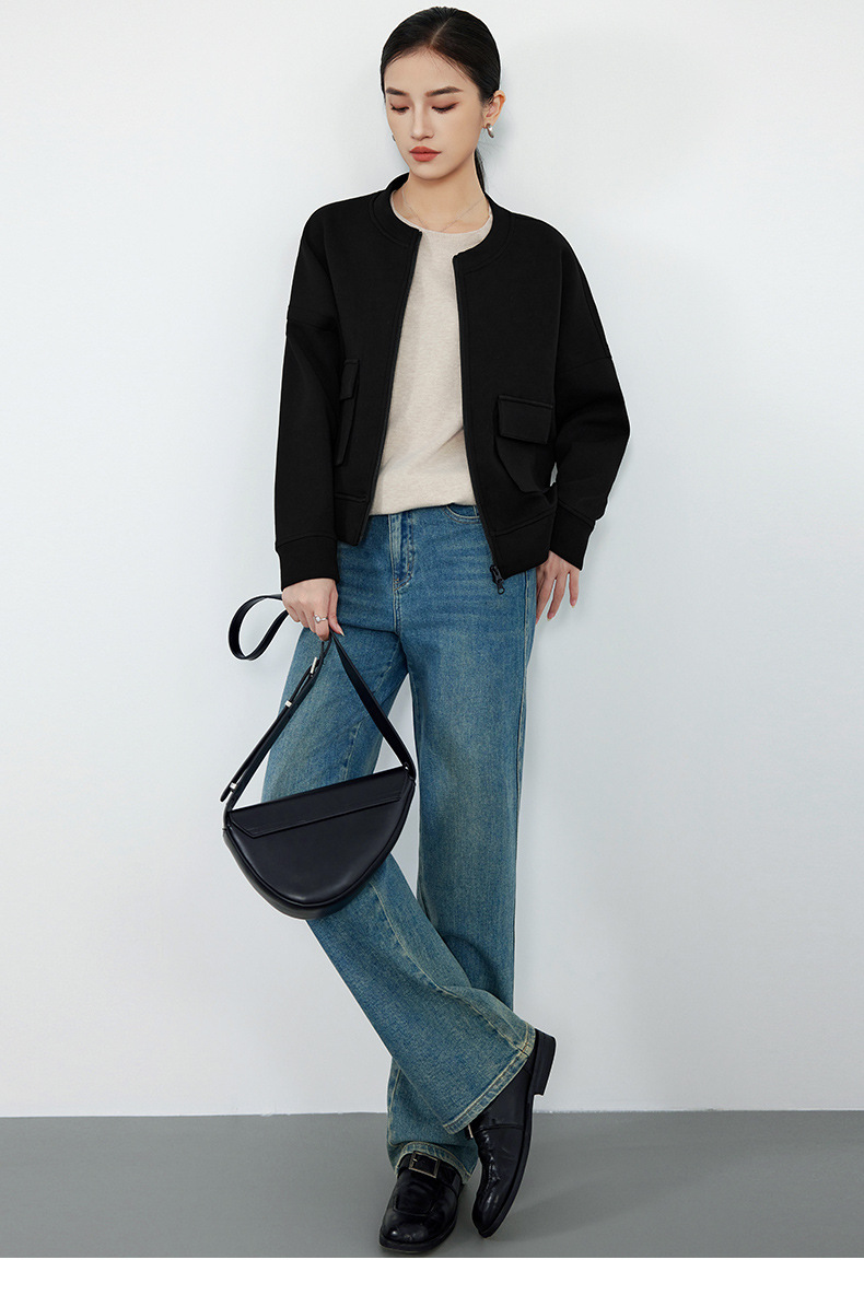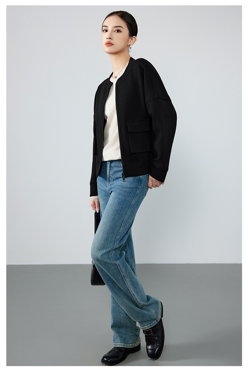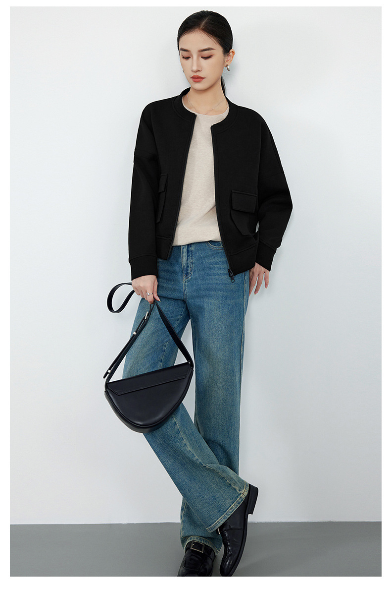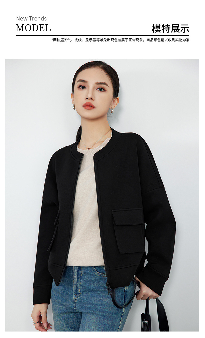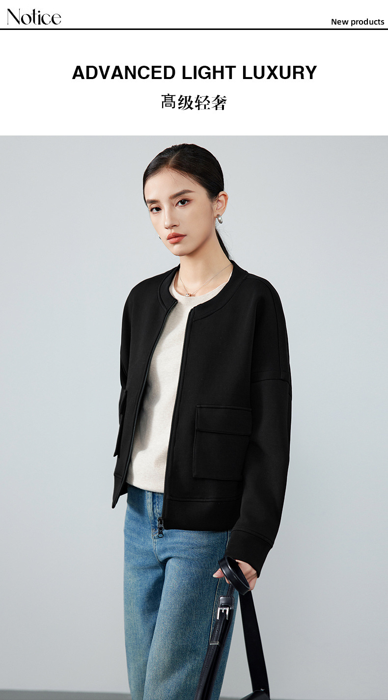 가을과 겨울 새로운 2024 둥근 목 긴 소매 단색 짧은 코트 여성 디자인 감각 야구 세트 비행사 재킷 탑스토어 가기