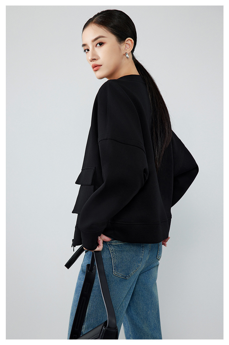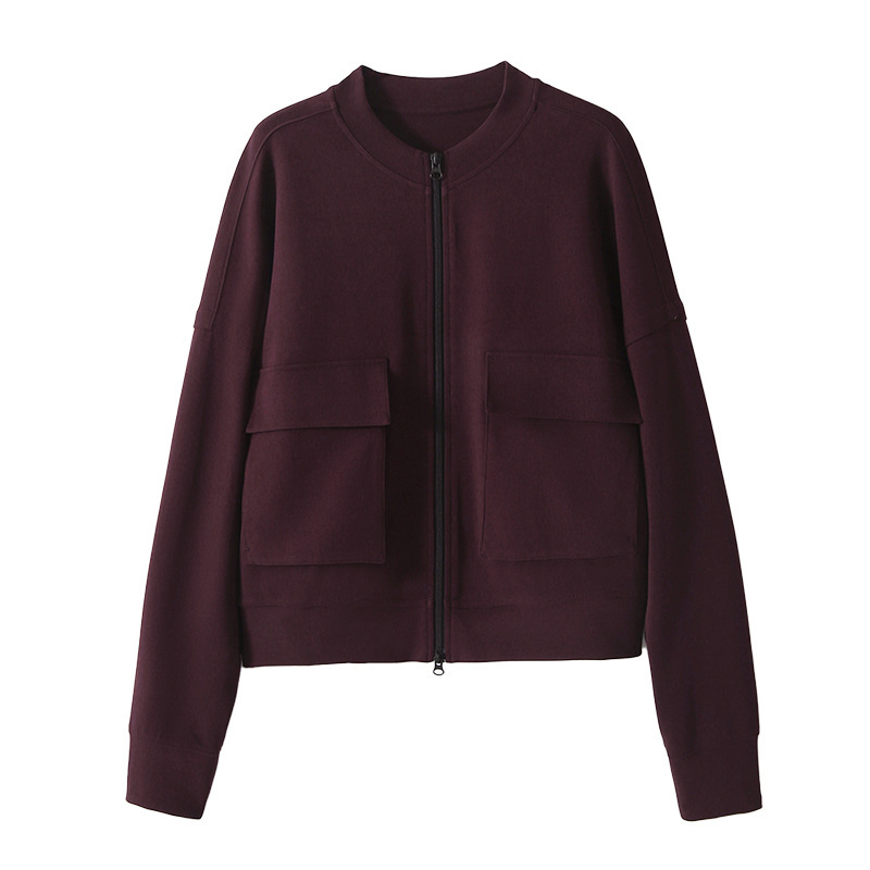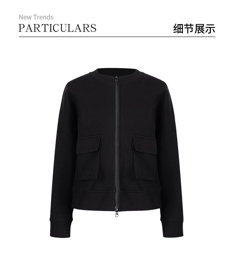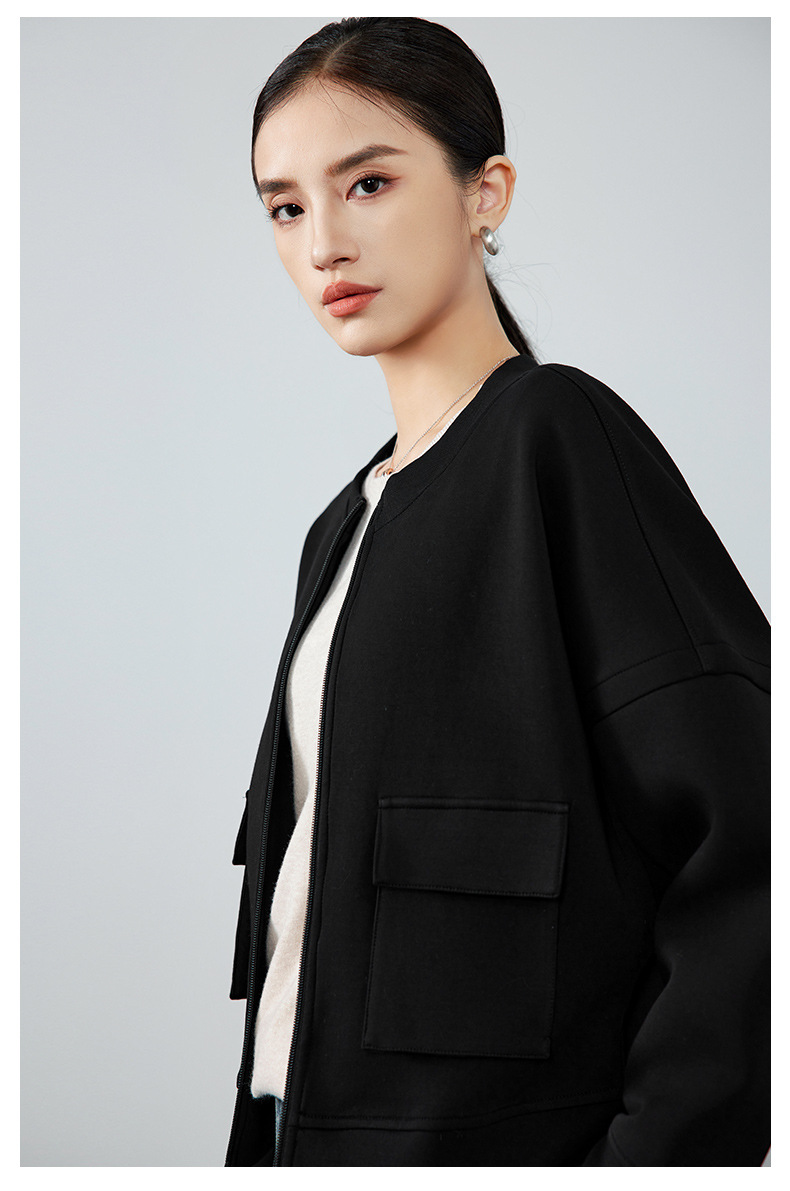 가을과 겨울 새로운 2024 둥근 목 긴 소매 단색 짧은 코트 여성 디자인 감각 야구 세트 비행사 재킷 탑