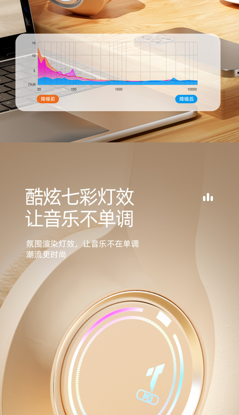 국경 간 M3 헤드셋 발광 블루투스 헤드셋 무선 서브 우퍼 e스포츠 게임 음악 헤드셋을 연결할 수 있습니다