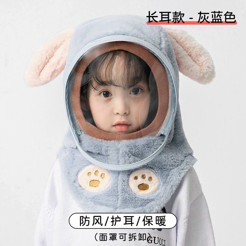남학생과 여학생을위한 겨울 어린이 모자 따뜻한 방풍 모자 보호 벨트 마스크 두꺼운 얼굴 커버 스카프 통합 풀오버 캡스토어 가기