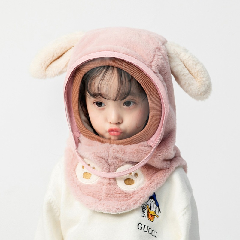 남학생과 여학생을위한 겨울 어린이 모자 따뜻한 방풍 모자 보호 벨트 마스크 두꺼운 얼굴 커버 스카프 통합 풀오버 캡