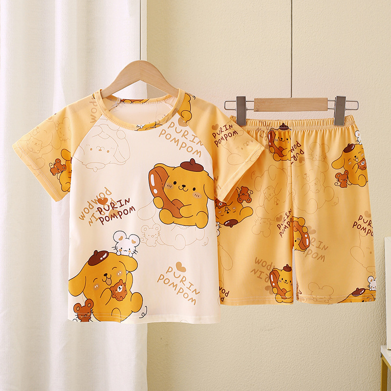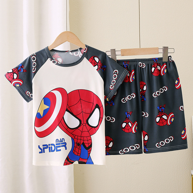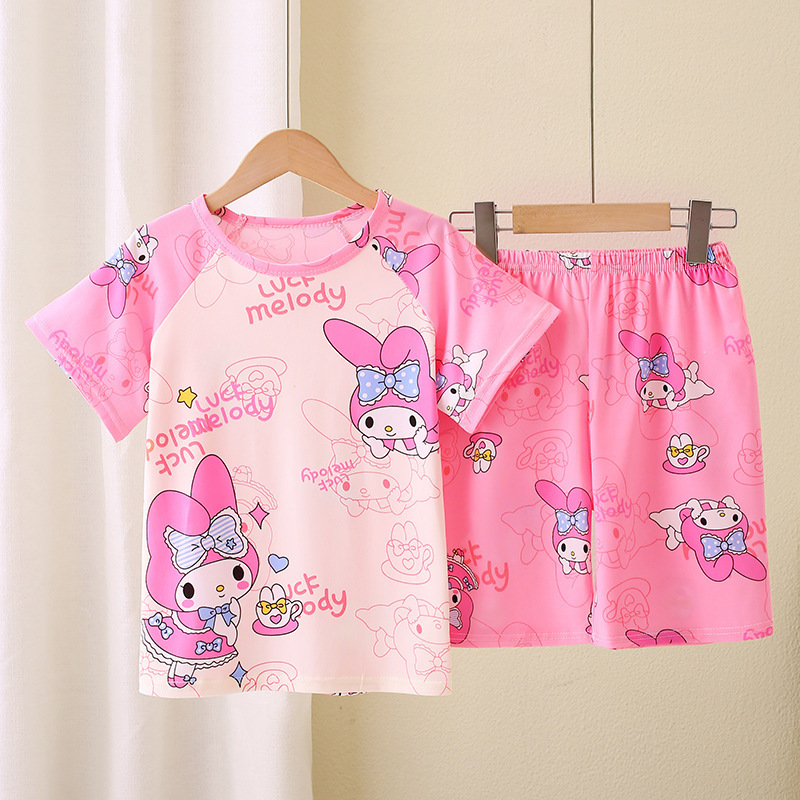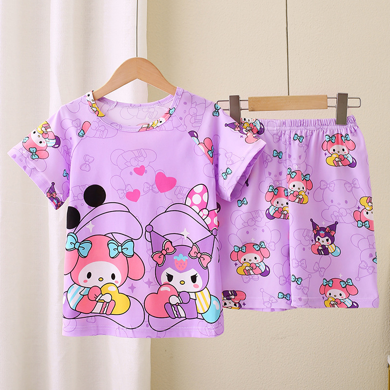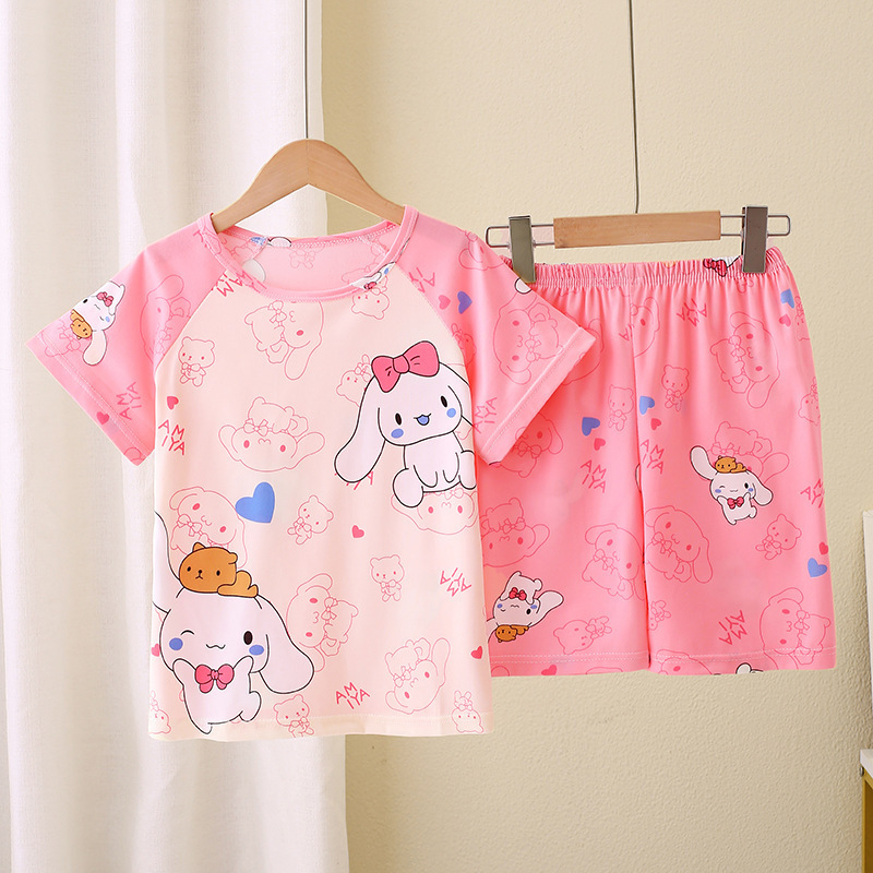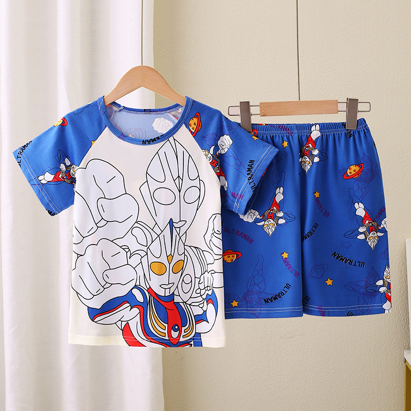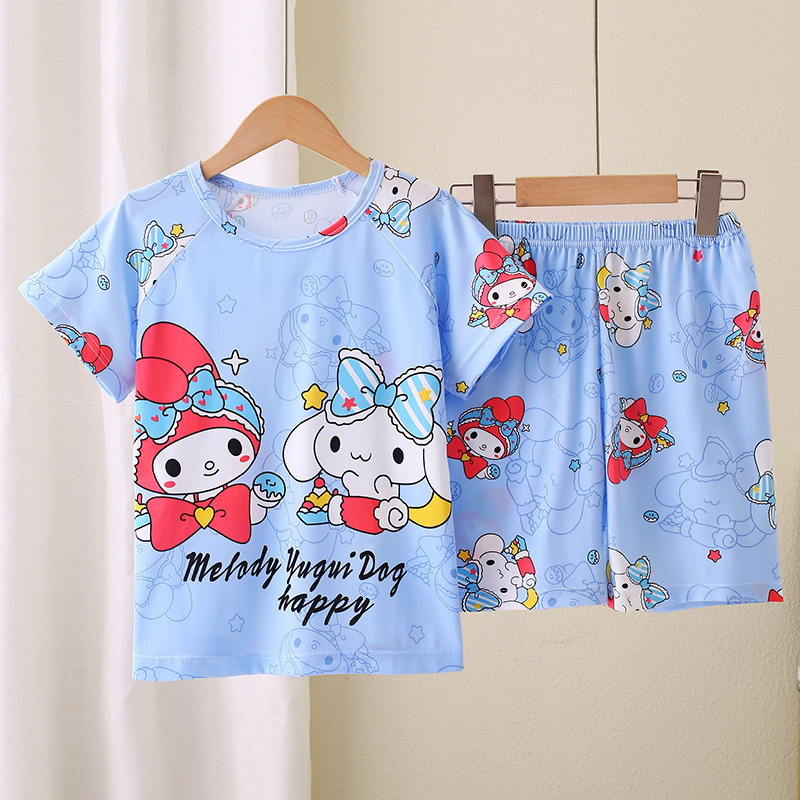 2024 년 새 여름 만화 소년 반팔 세트 소녀 잠옷