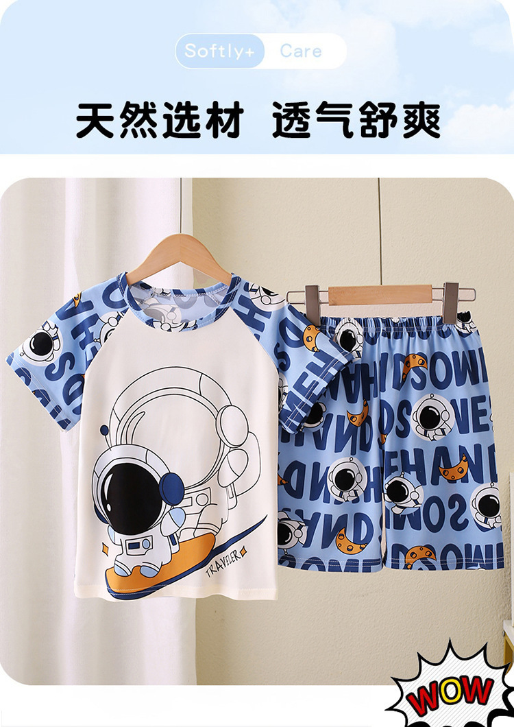 2024 년 새 여름 만화 소년 반팔 세트 소녀 잠옷스토어 가기