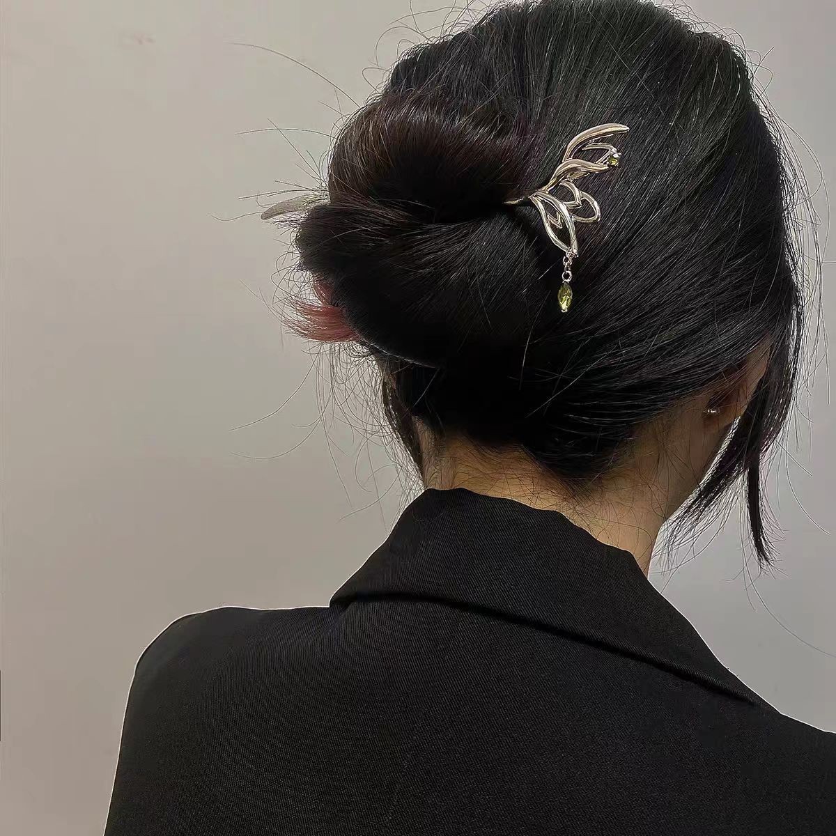 • 대나무잎 물방울 펜던트 머리핀 T0122