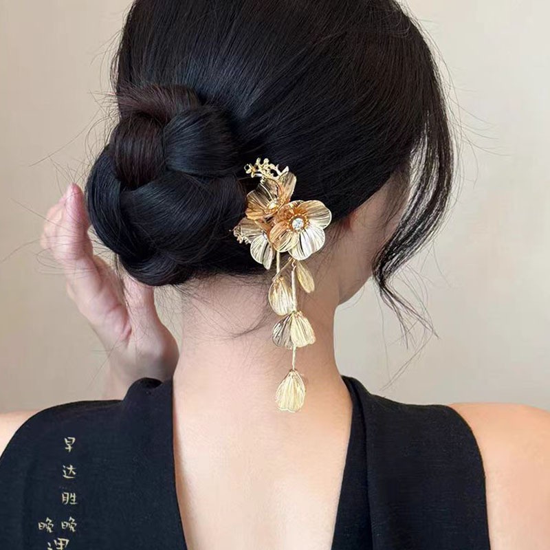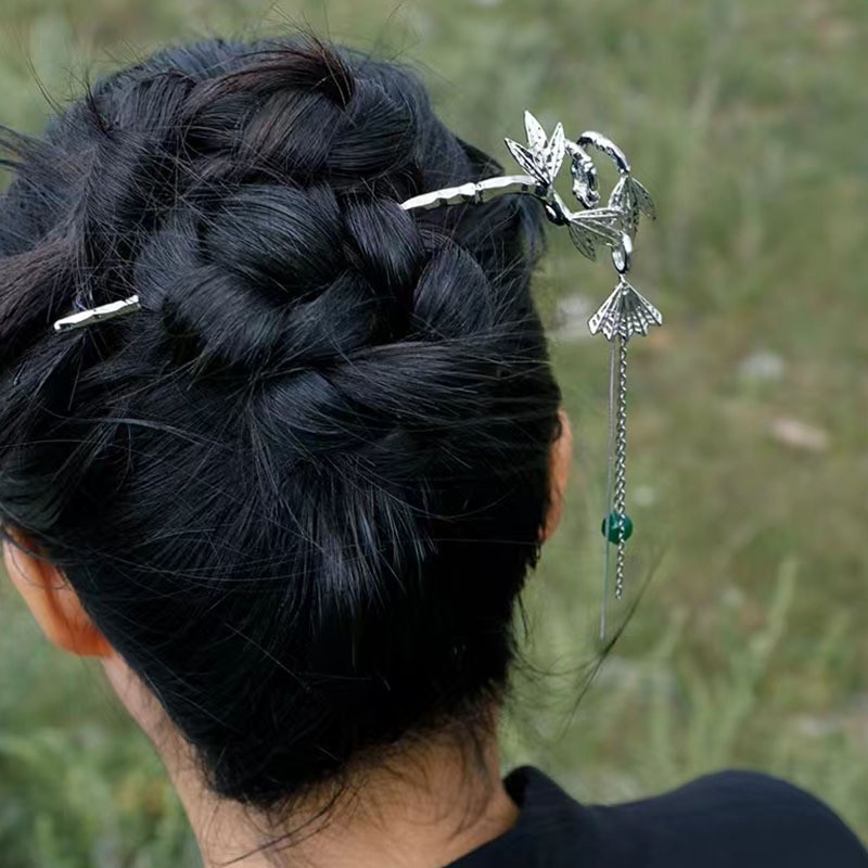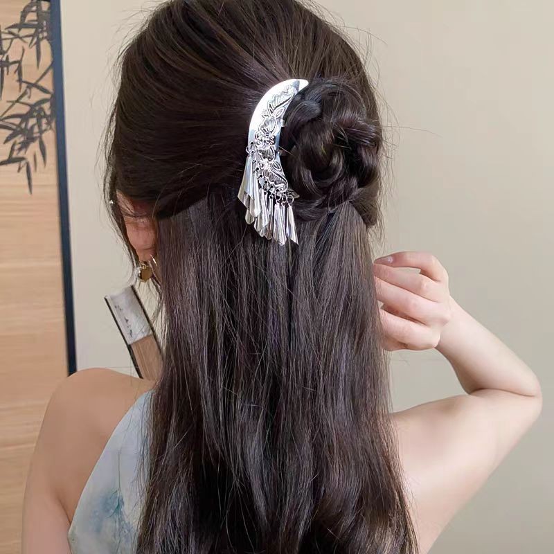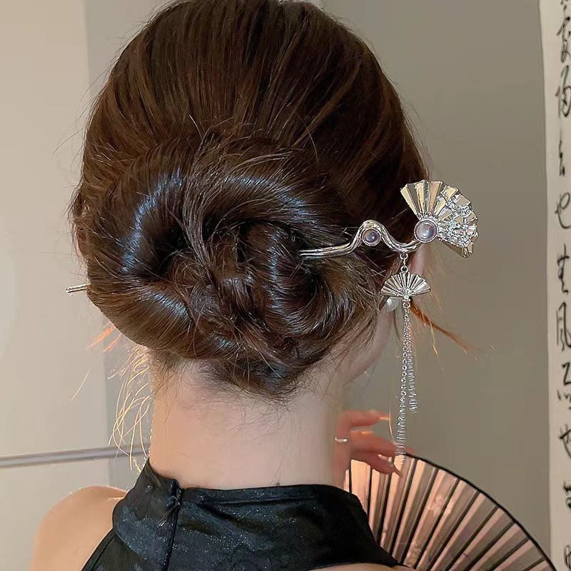 새로운 중국 스타일 나비 술 헤어핀 여성용 골동품 팬 펜던트 헤어 핀 틈새 디자인 빈티지 올 매치 헤드웨어 헤어 액세서리