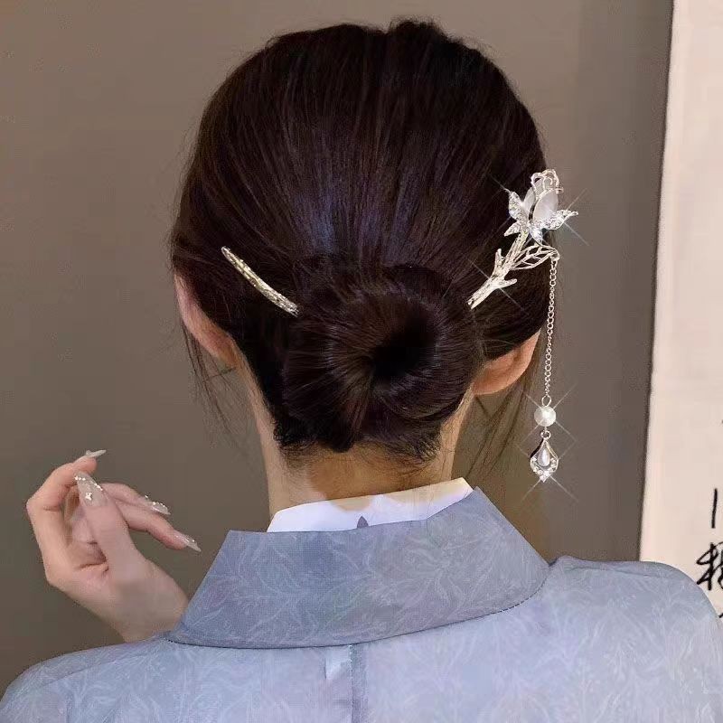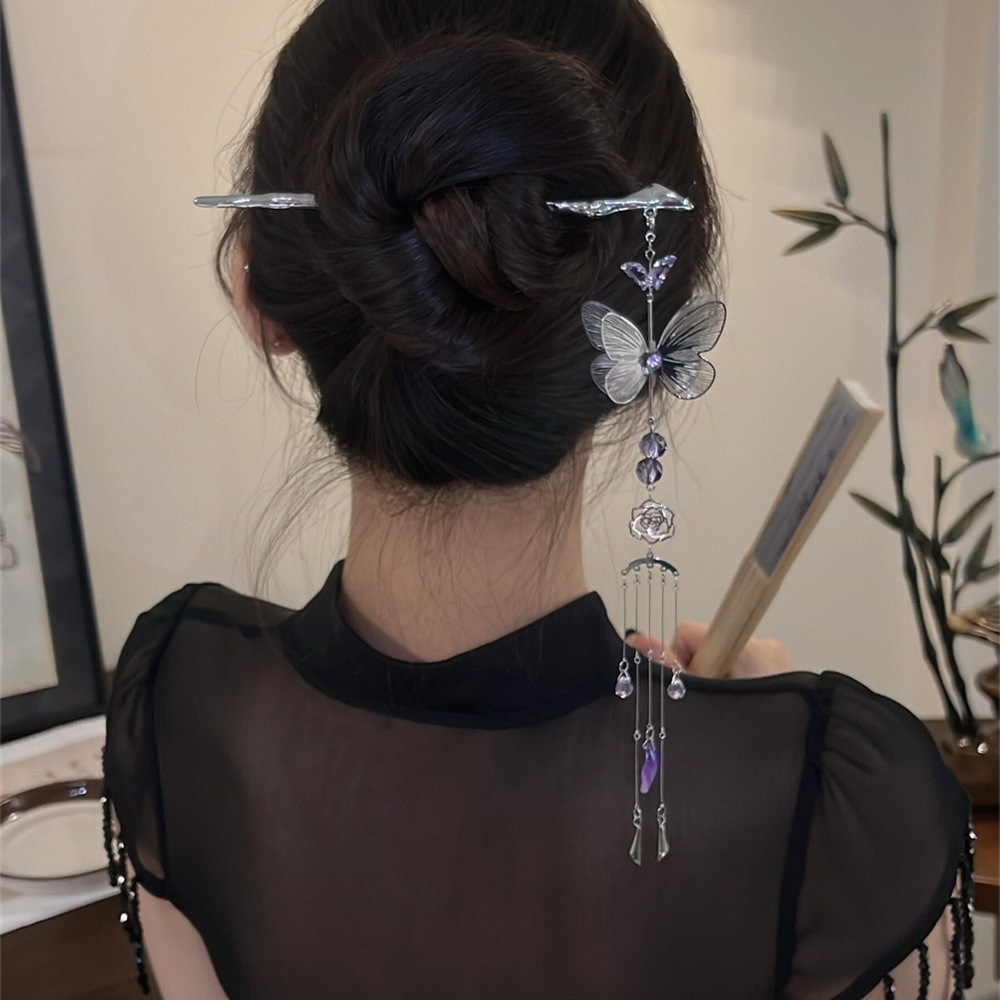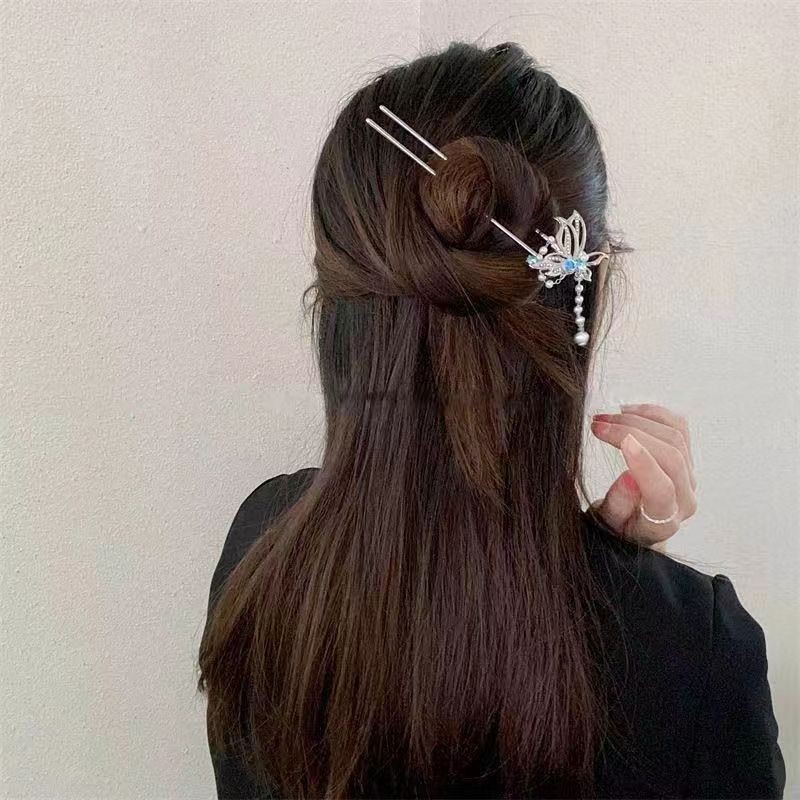 새로운 중국 스타일 나비 술 헤어핀 여성용 골동품 팬 펜던트 헤어 핀 틈새 디자인 빈티지 올 매치 헤드웨어 헤어 액세서리스토어 가기