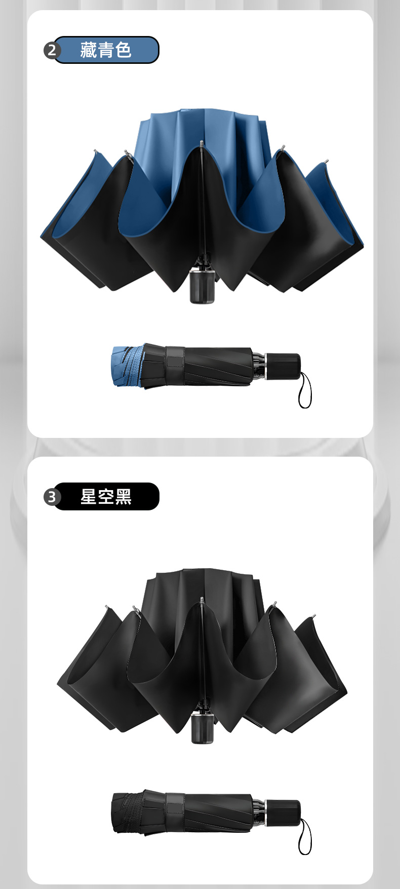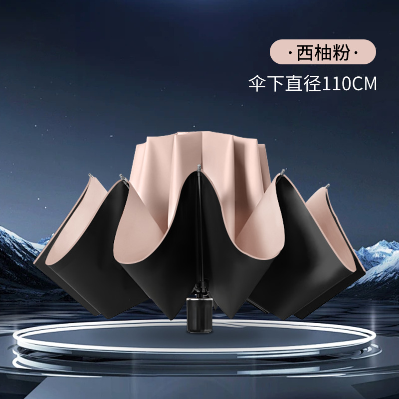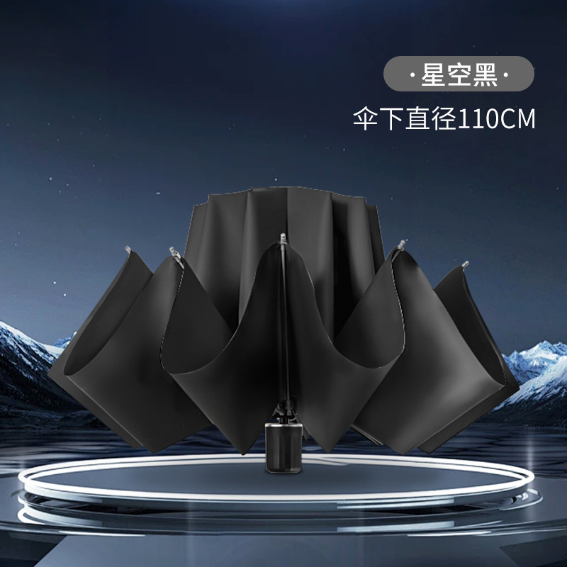 완전 자동 리버스 버클 10 본 사업 우산 방풍 우산 검은 고무 태양 보호 및 비 보호 이중 사용 이중 우산스토어 가기