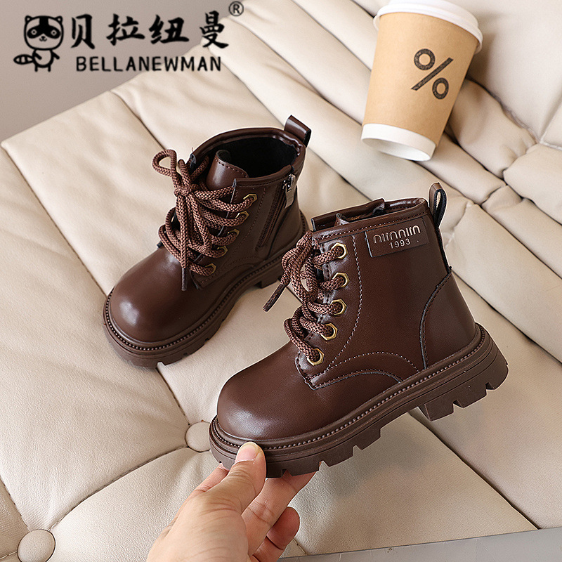 여자 패션 영국 스타일 마틴 부츠 2024 겨울 새로운 한국 스타일 어린이 2 면 짧은 부츠 소년 블랙 가죽 부츠스토어 가기