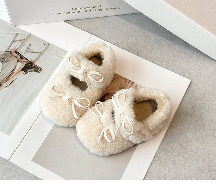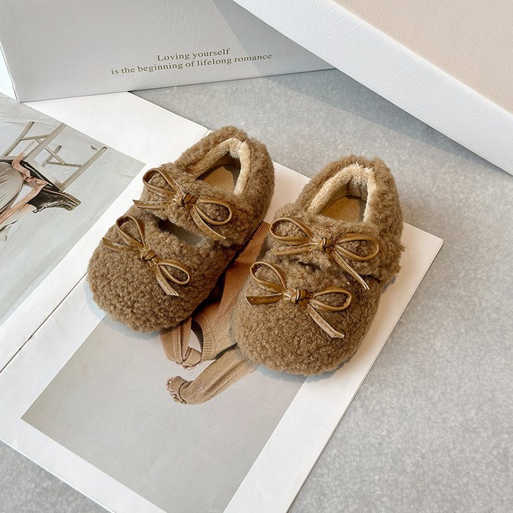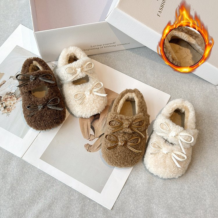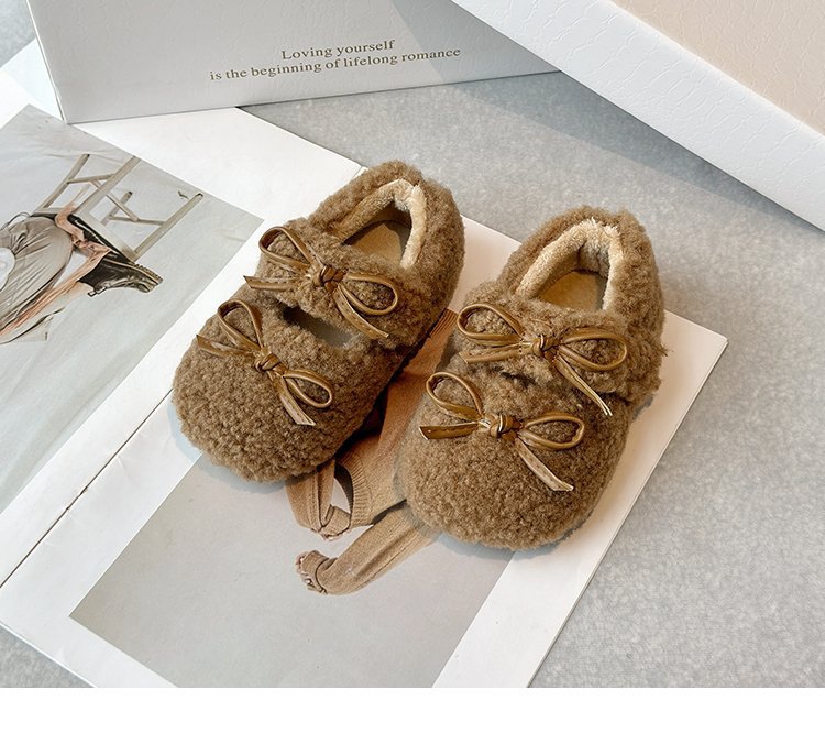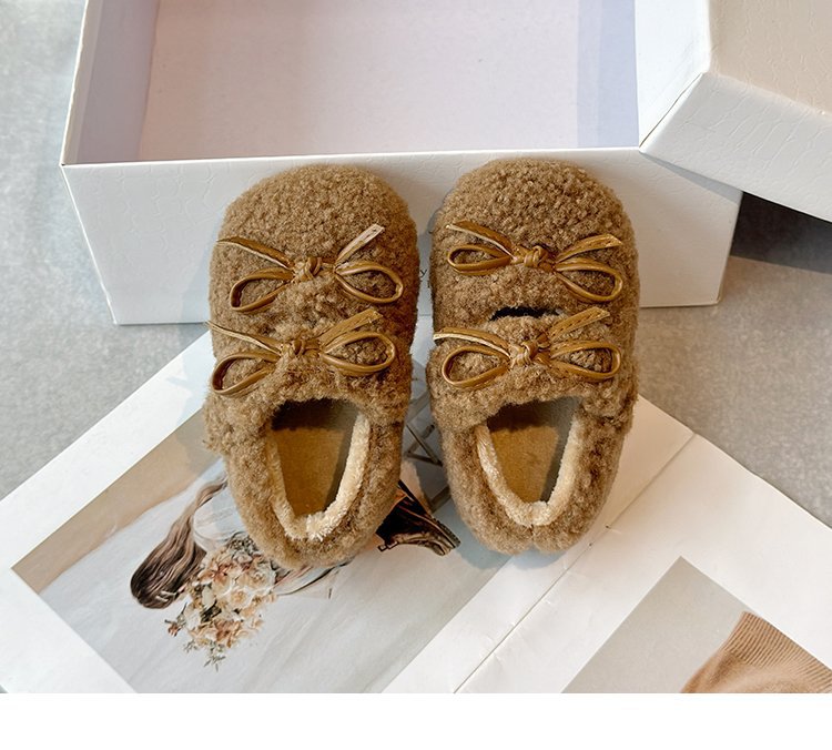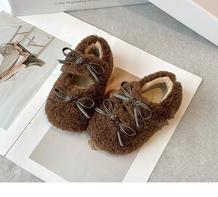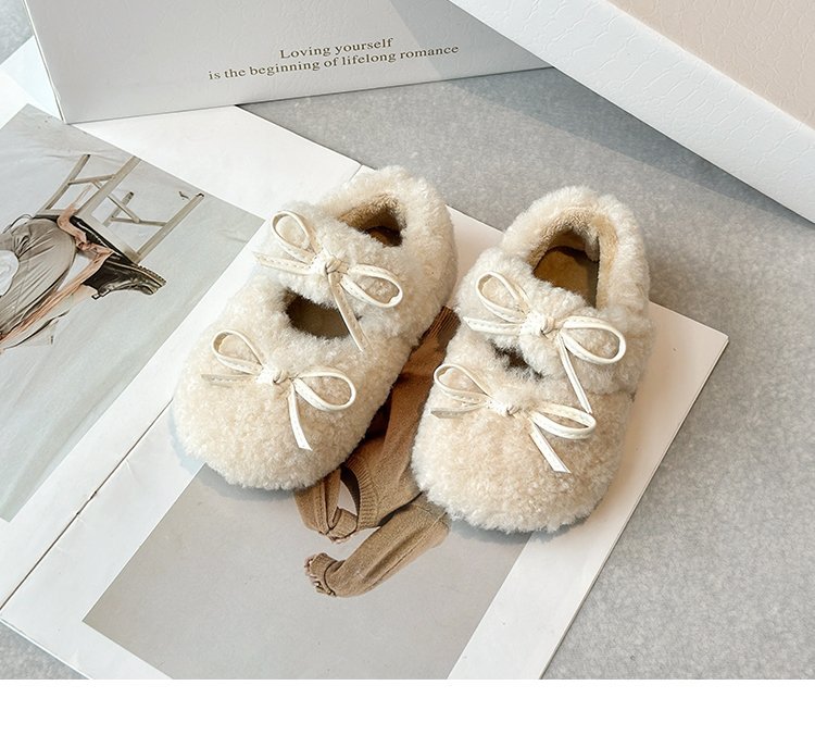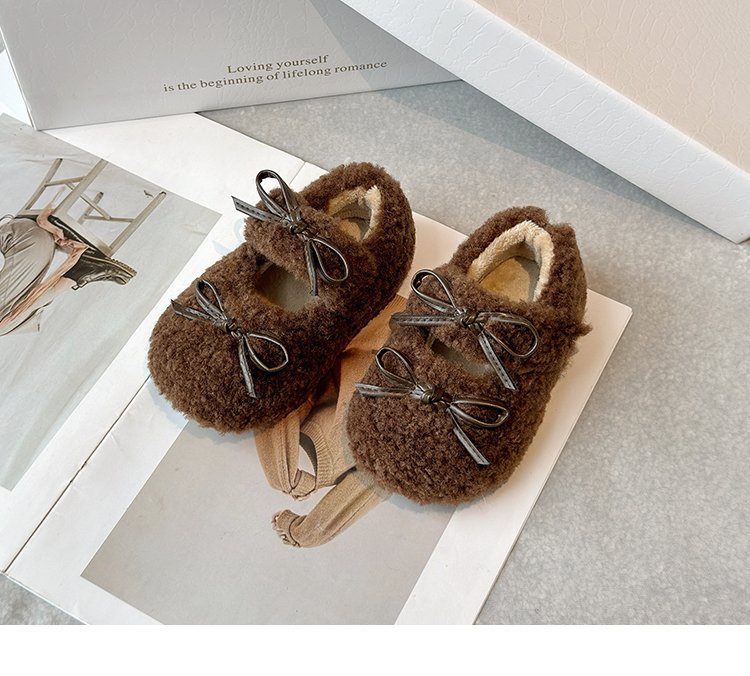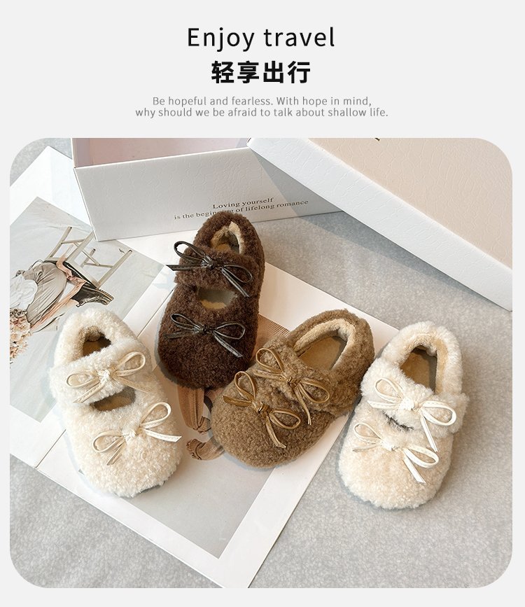 달콤한 마오 마오 신발 소녀 가을 겨울 2024 새로운 기모 콩 신발 활 평평한 따뜻한 면화 신발 착용