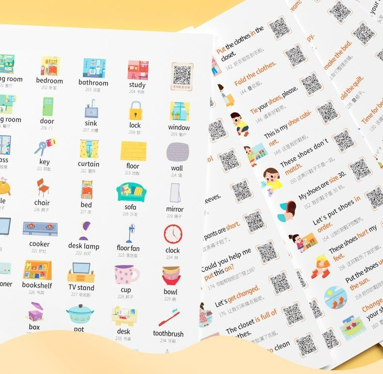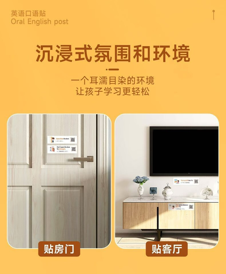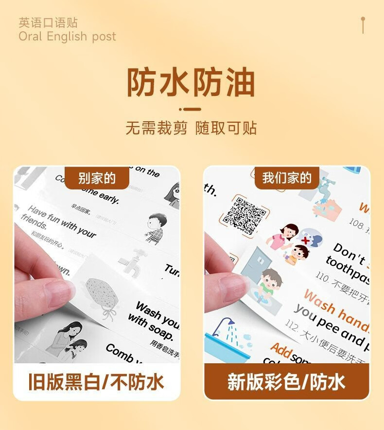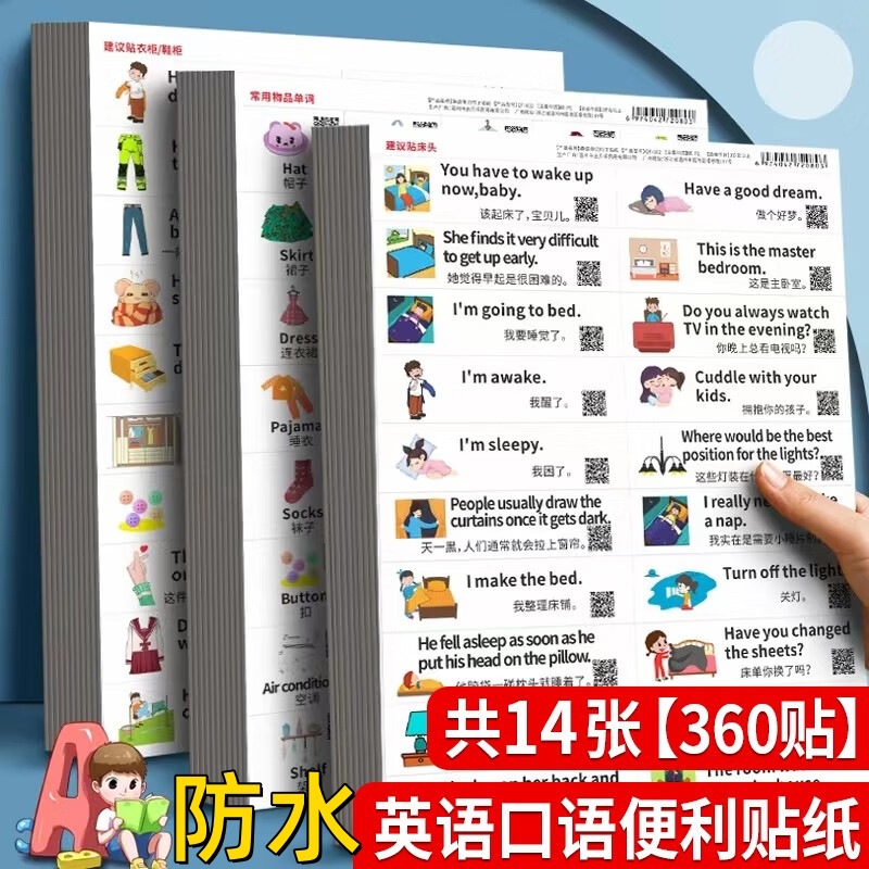 방수 및 기름 방지 영어 단어 문장 스티커 360 스틱 스캔 코드 읽기 영어 스티커 가족 상황 초등학생스토어 가기