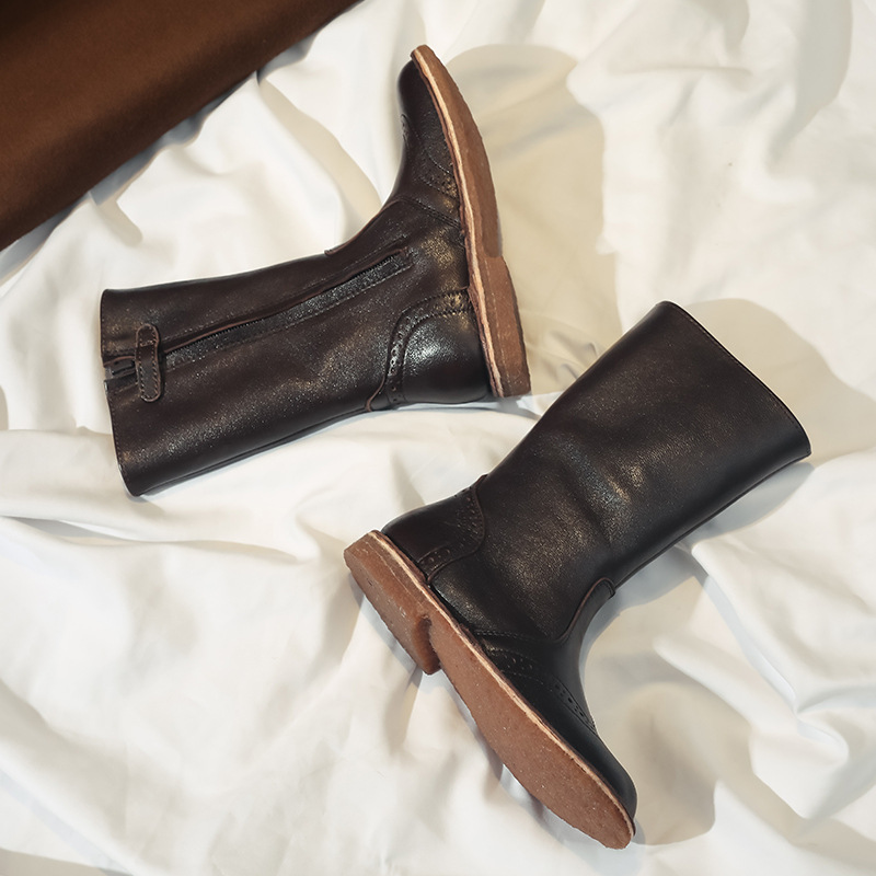 여자 가죽 부츠 2025 가을 겨울 새로운 스타일 수제 신발 앙고라 가죽 버클 패션 유럽 제품 부드러운 밑창 전체 가죽 마틴 부츠스토어 가기