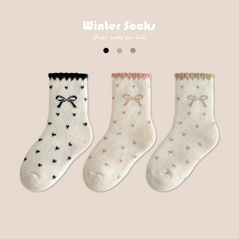 24 겨울용 두꺼운 아동 양말 A급 여아용 테리 양말 두꺼운 양말 따뜻한 털 양말 주지