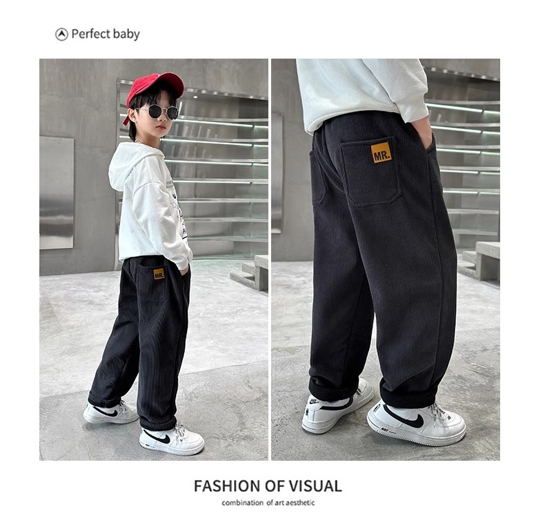 어린이 소년 가을 겨울 바지 2024 새로운 바지 큰 어린이 스포츠 겨울 소년 코듀로이 기모 운동복스토어 가기