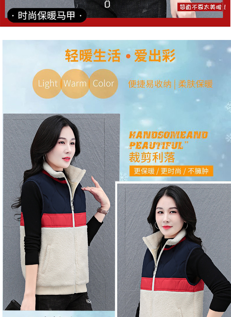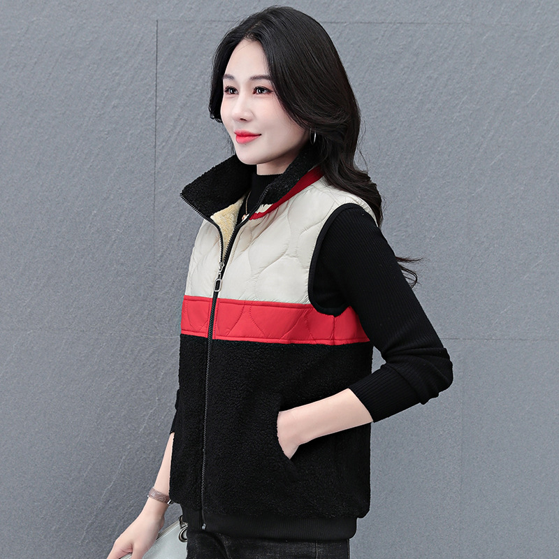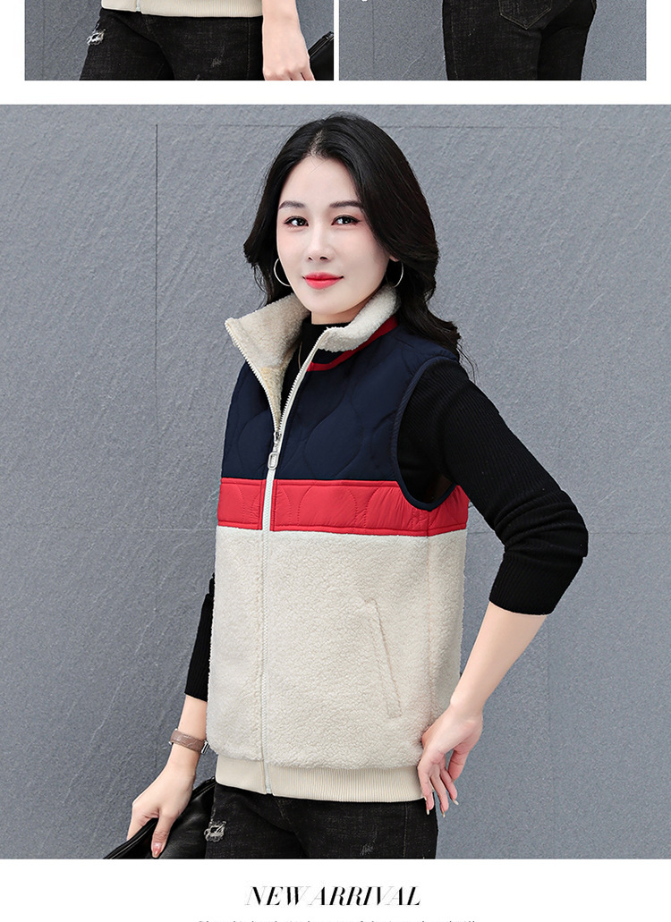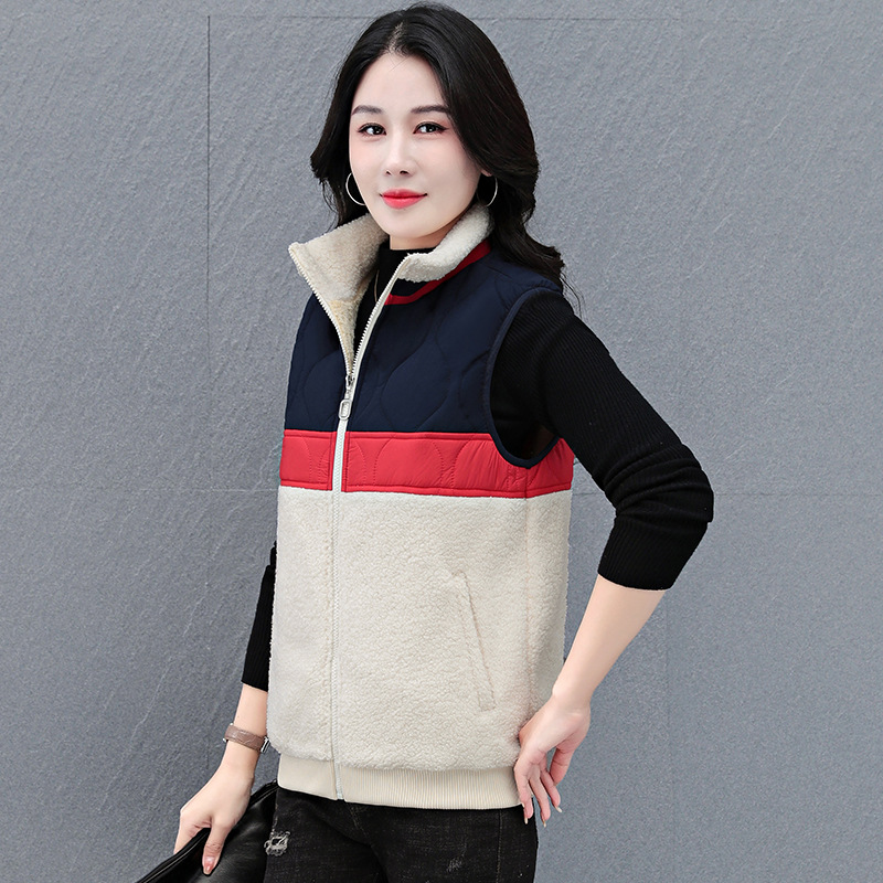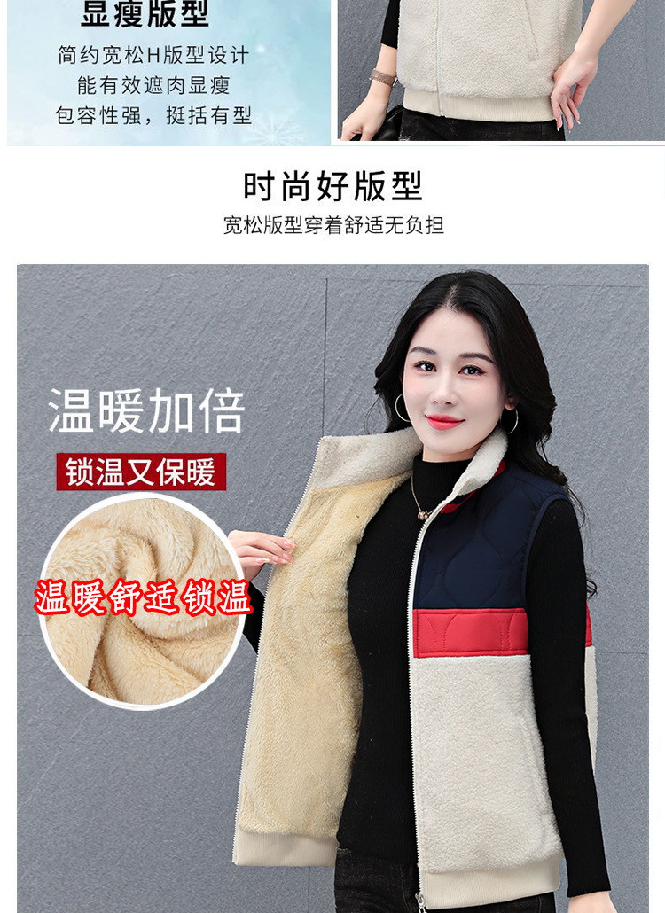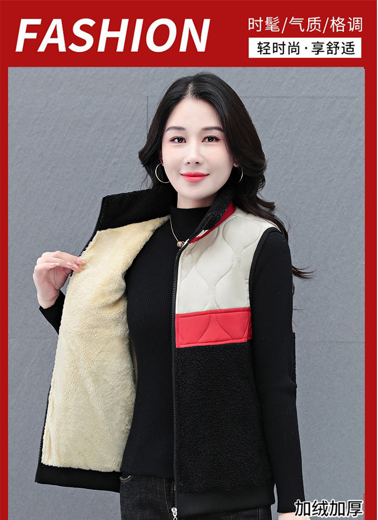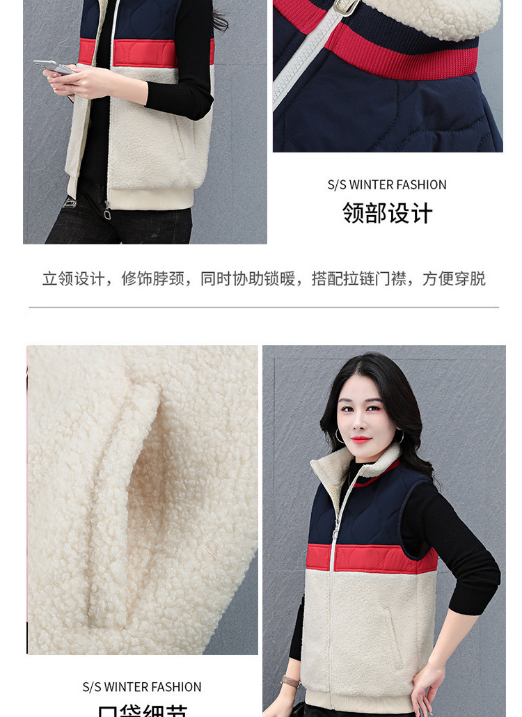 양면 벨벳 칼라 Lambswool 기모 두꺼운 따뜻한 조끼 여성의 가을과 겨울 중년 어머니의 서양식 명암 조끼스토어 가기
