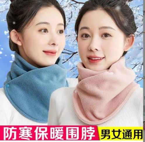 겨울용 두꺼운 벨벳 따뜻한 목 보호 폴라 플리스 더블 버튼 스카프, 방한 및 방풍 기능이 있는 사이클링용 다기능 다용도 스카프스토어 가기