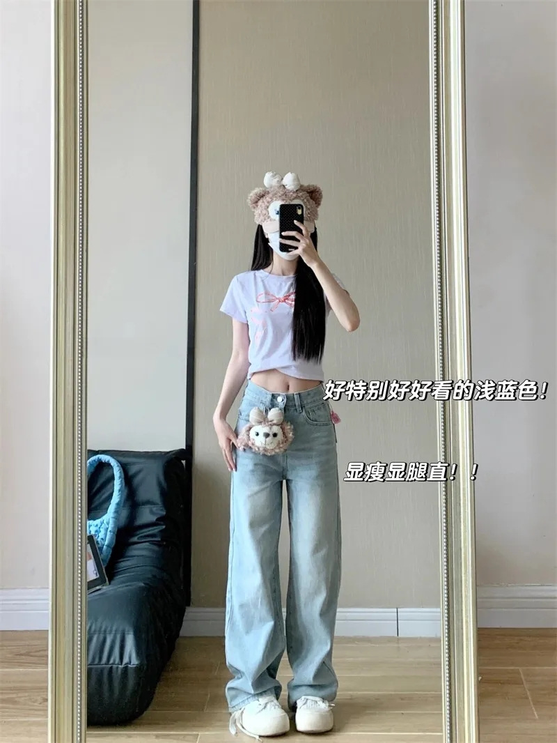 여성용 청바지 2026년 신상품 초가을 얇은 스타일 올해 유행하는 작은 사이즈 하이웨이스트 아메리칸 하이스트리트 스트레이트 팬츠스토어 가기