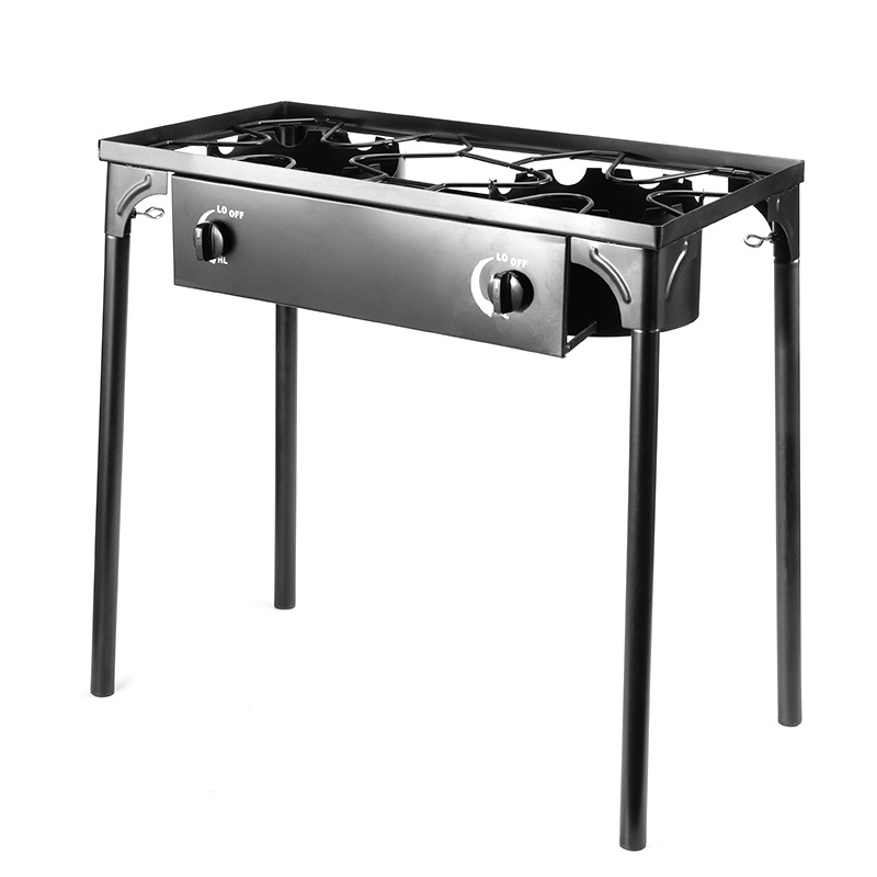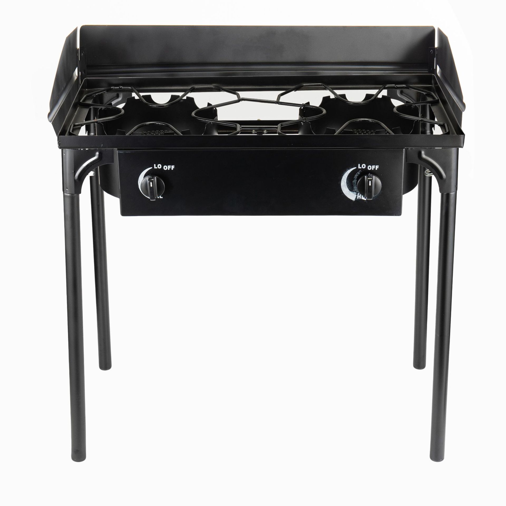 아마존 재고 보유 이중 헤드 고압 야외 스토브 (바람막이 포함, 20PSI 감압 밸브 장착) 야외용 에너지 절약형 가스레인지스토어 가기