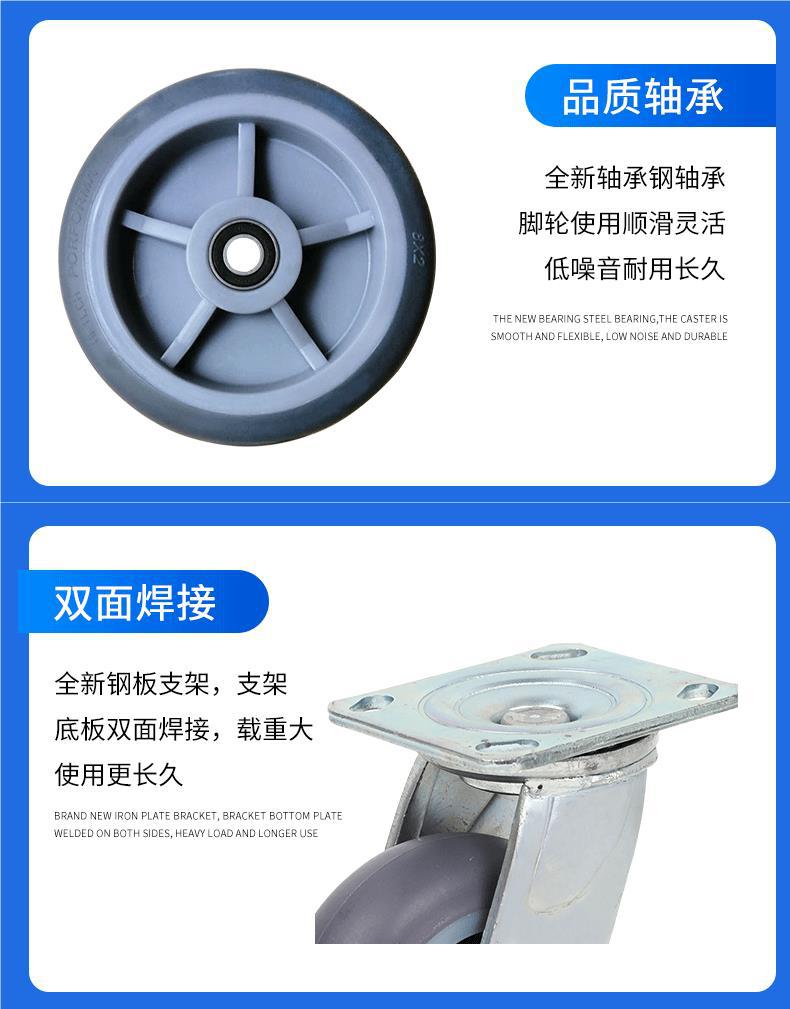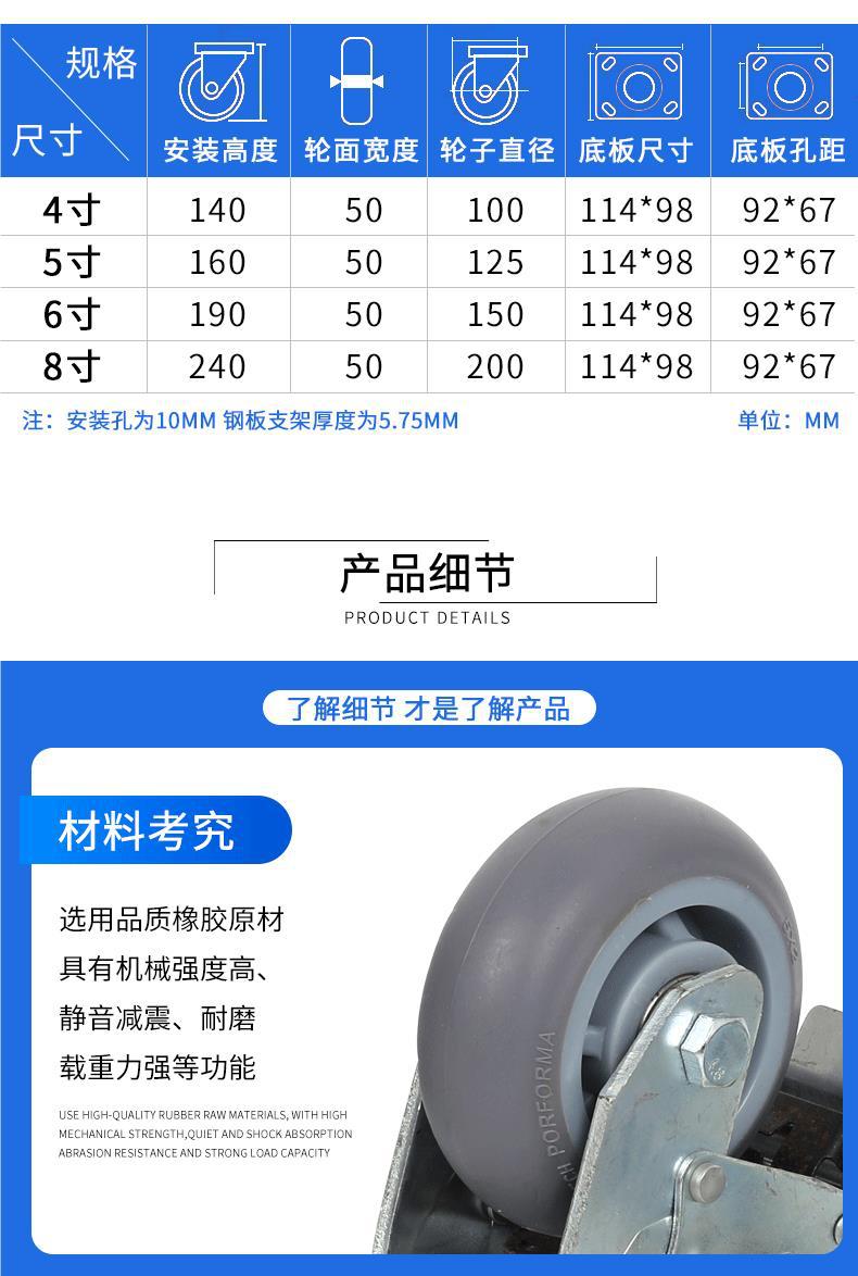 유니버설 휠 TPR 고무 캐스터 3/4/5/6/8 인치 중간 무거운 음소거 회색 고무 카트 브레이크 방향 휠스토어 가기